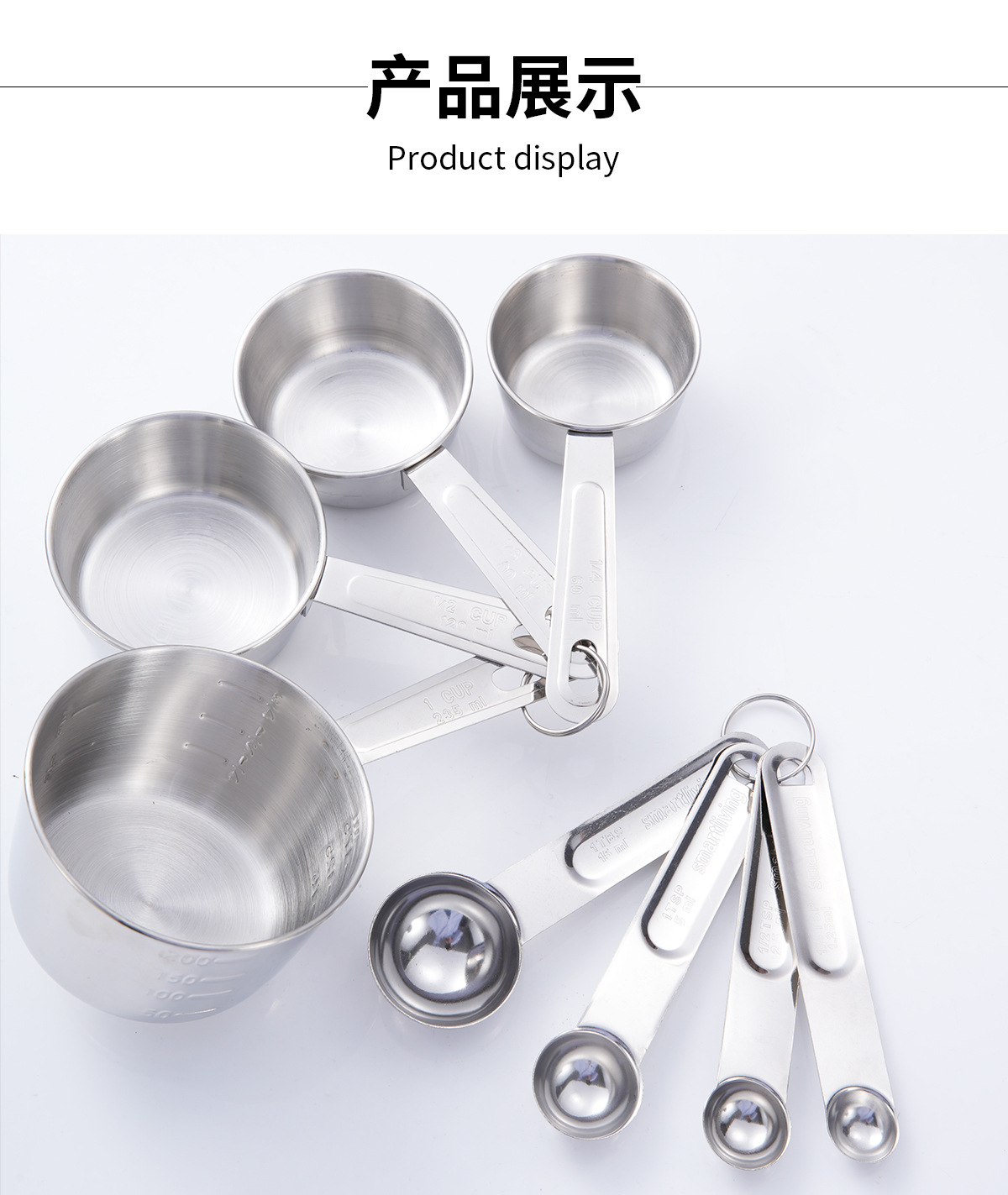 스테인레스 스틸 측정 컵 측정 숟가락 조미료 가정용 호텔 주방 베이킹 공장 규모 측정 숟가락 4 ~ 8 개 세트