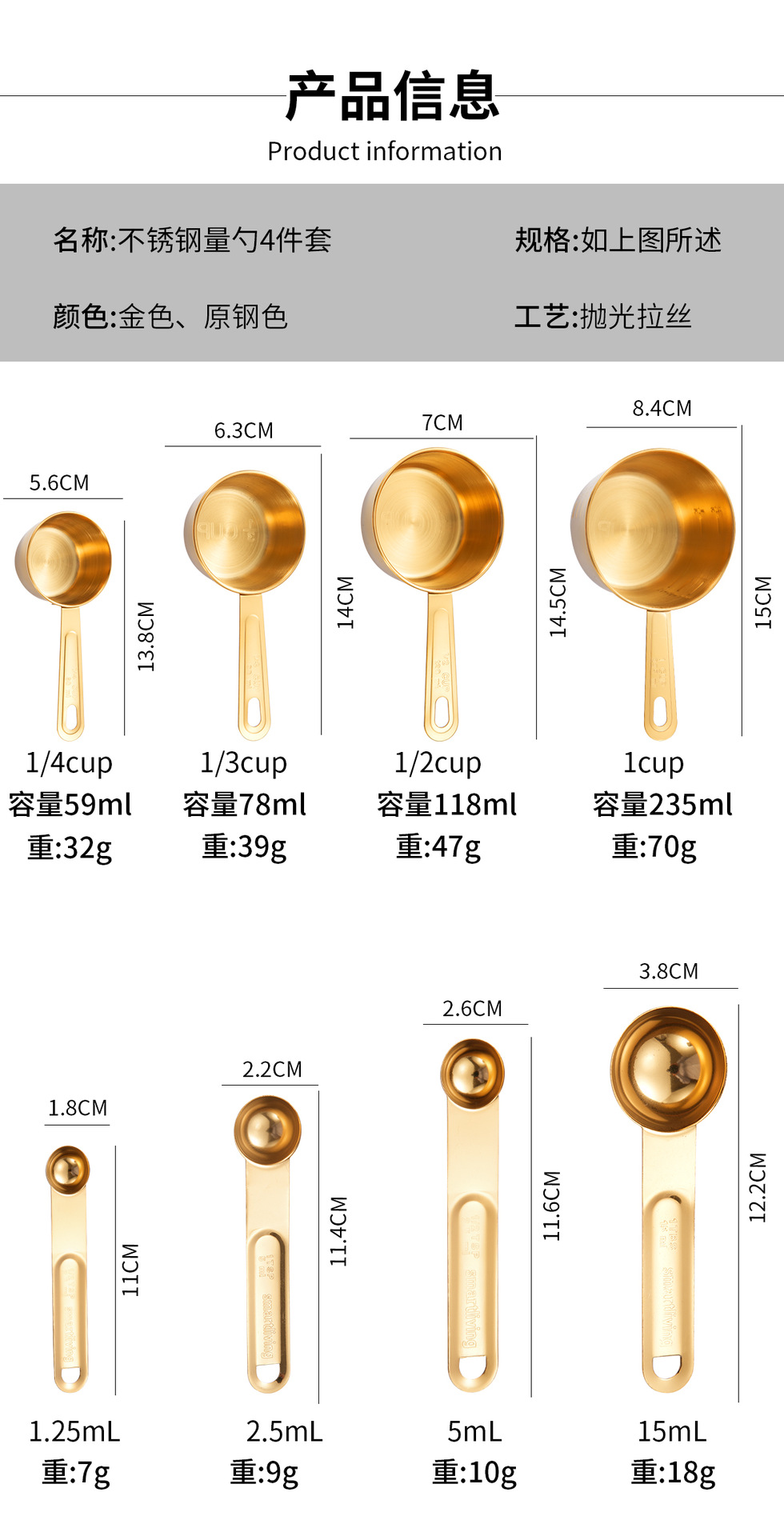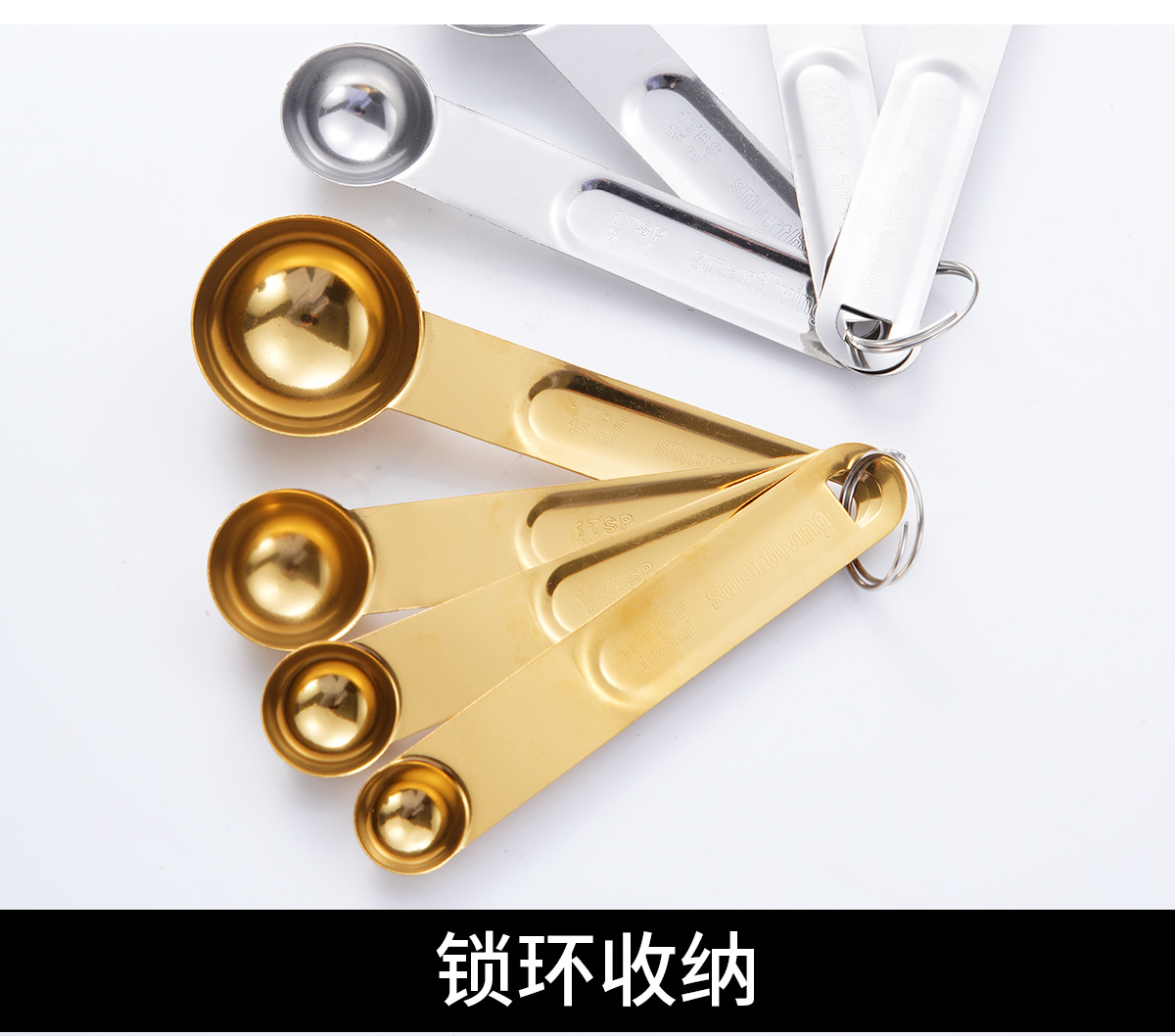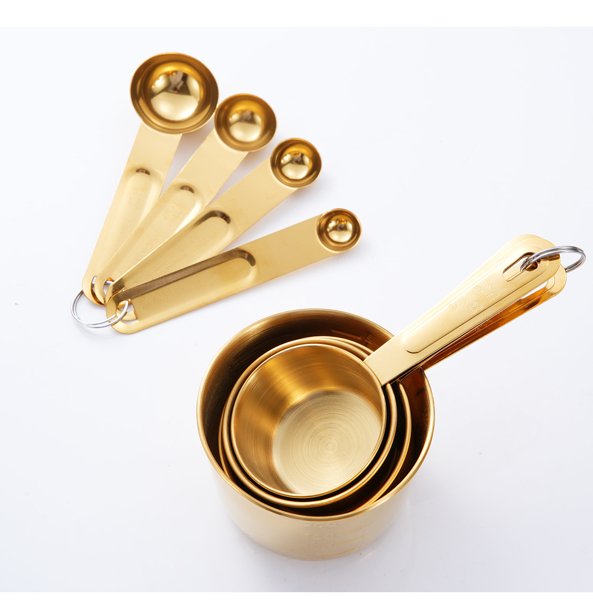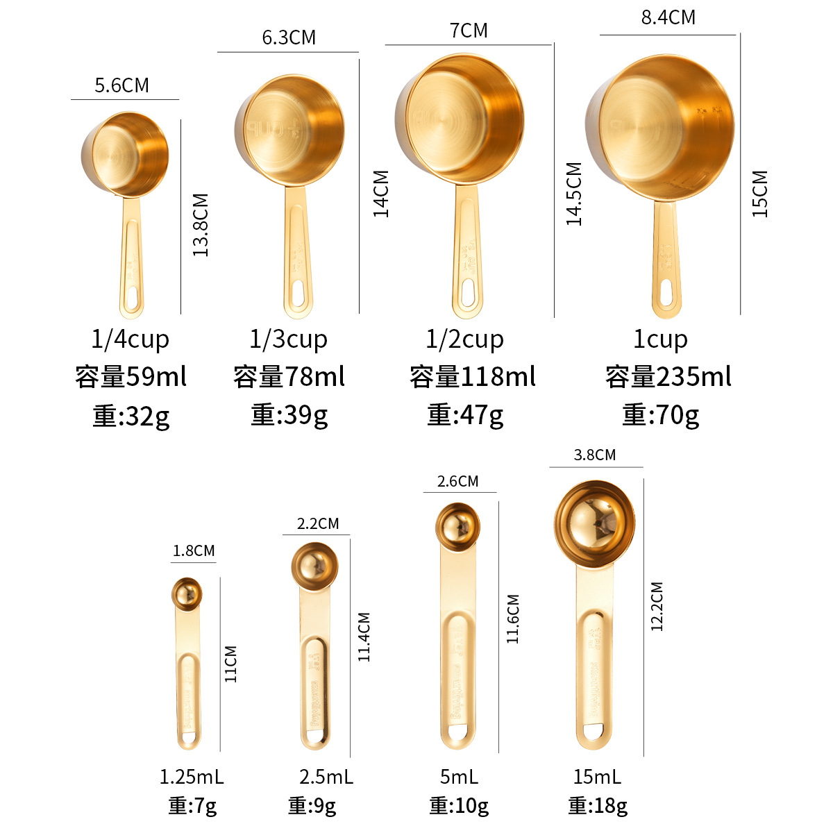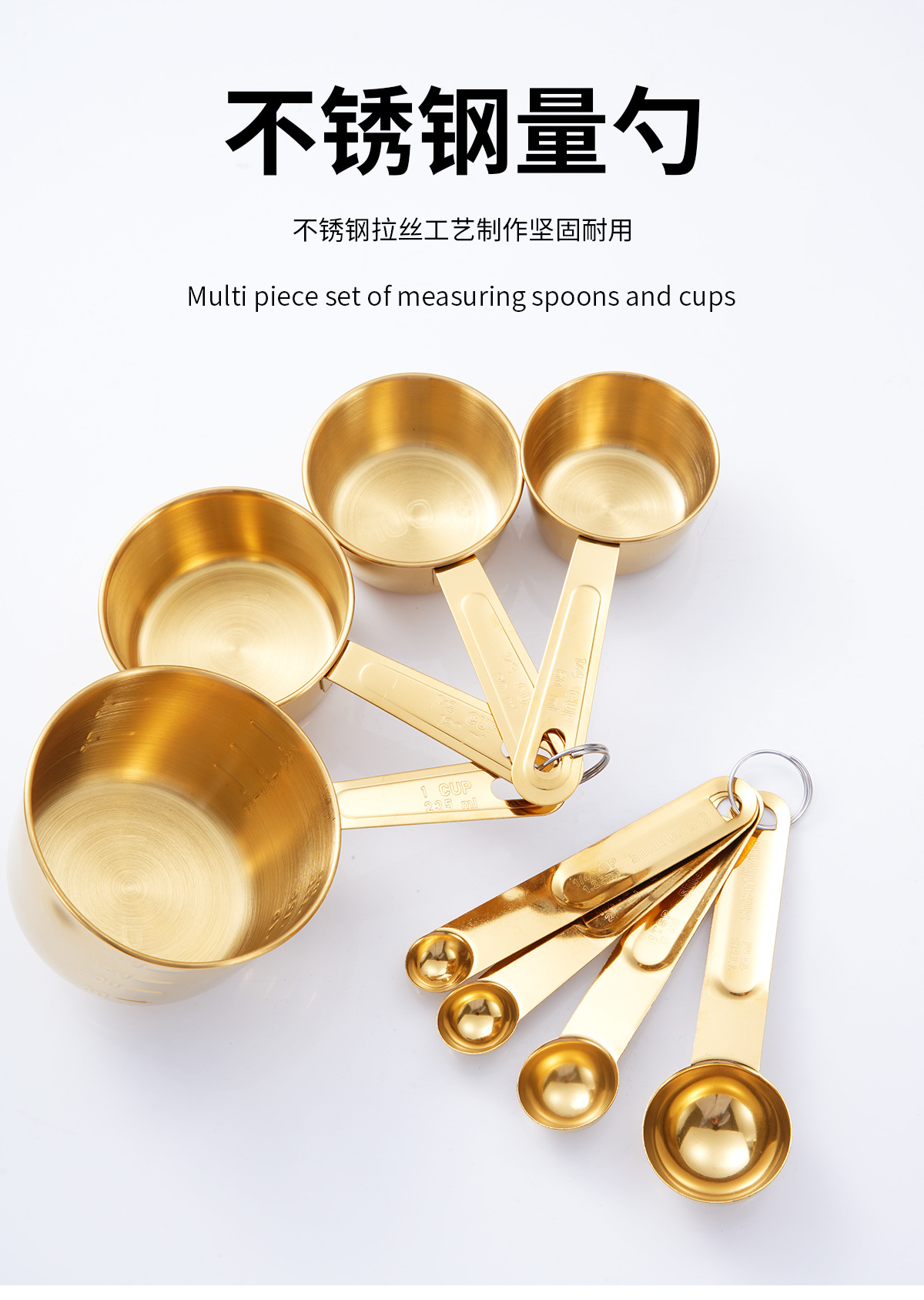 • 황금 측정 컵 측정 숟가락 8 피스 세트