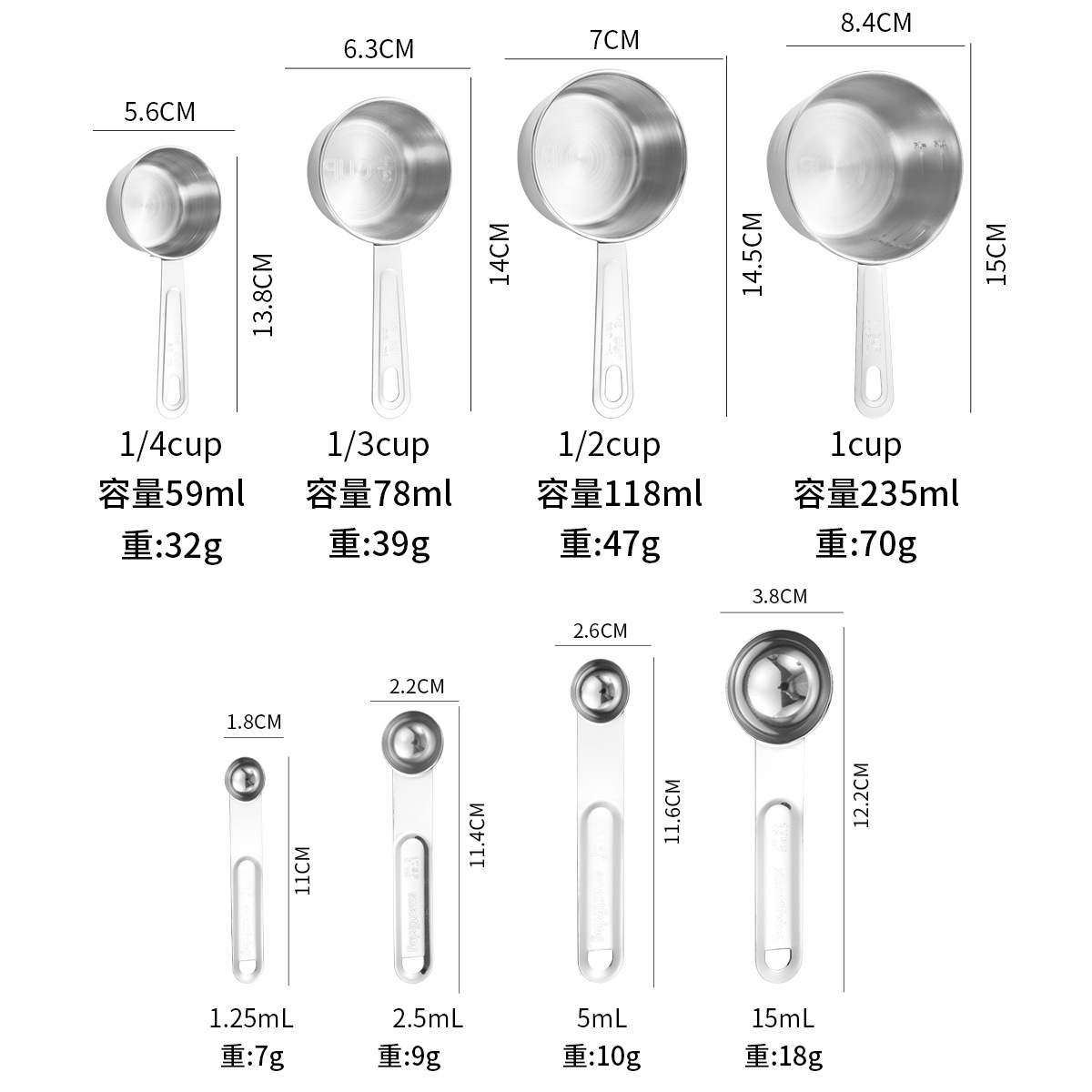 스테인레스 스틸 측정 컵 측정 숟가락 조미료 가정용 호텔 주방 베이킹 공장 규모 측정 숟가락 4 ~ 8 개 세트스토어 가기