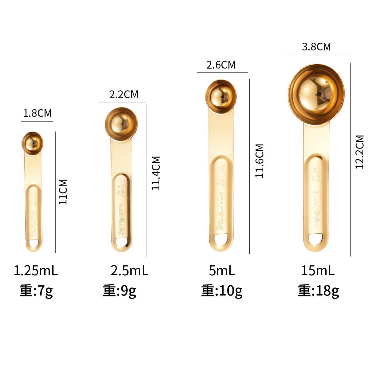 • 4 의 황금 측정 숟가락 세트