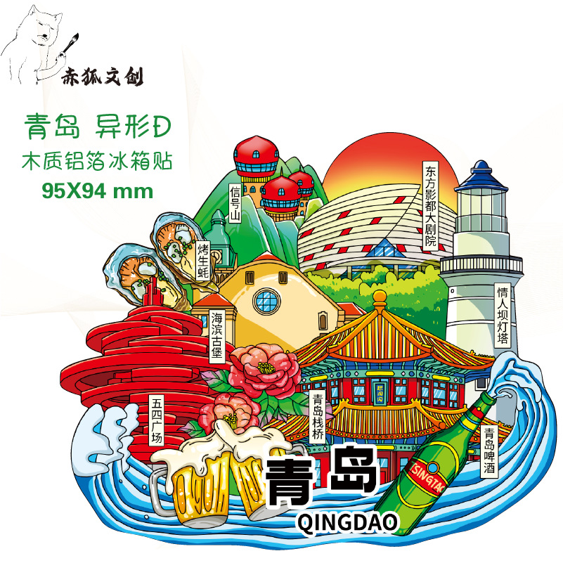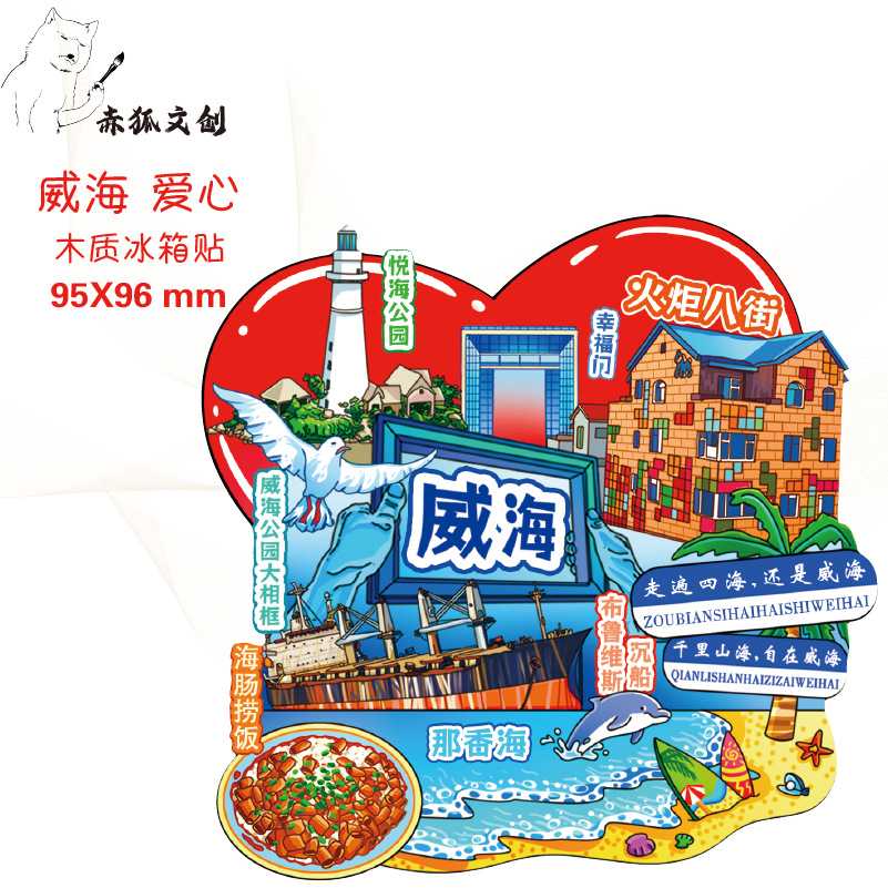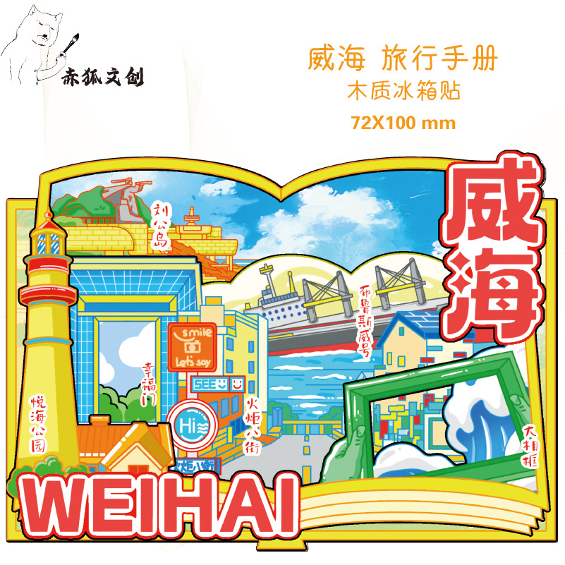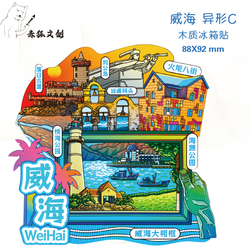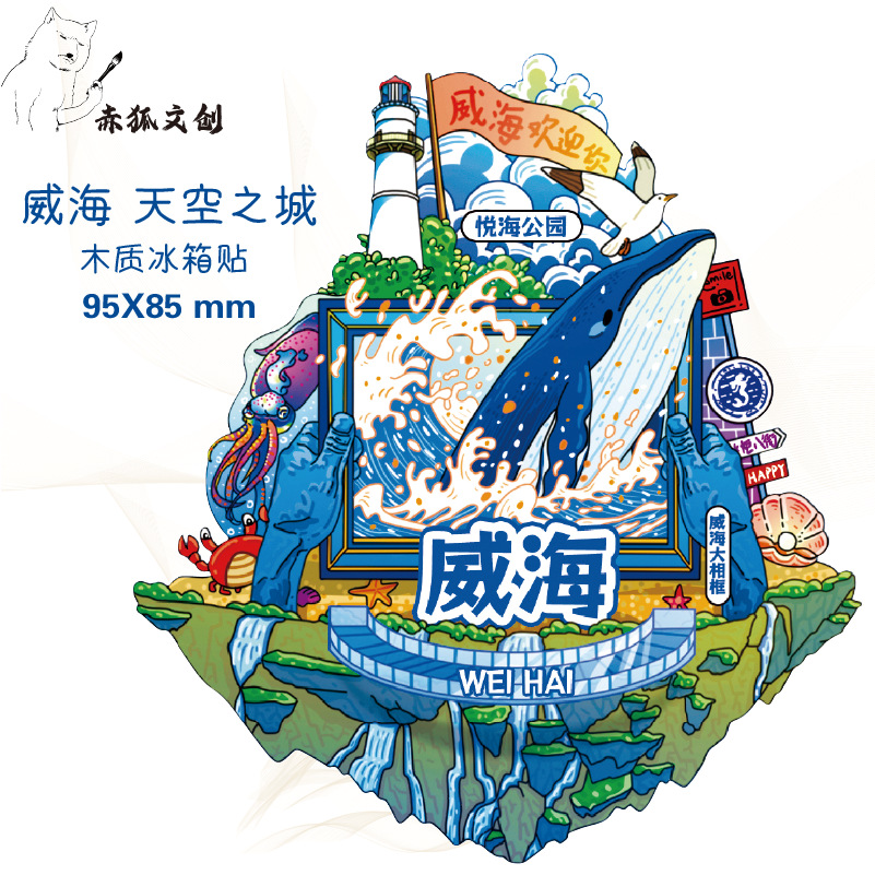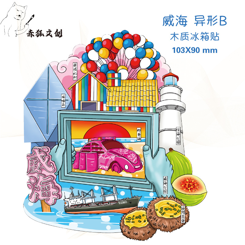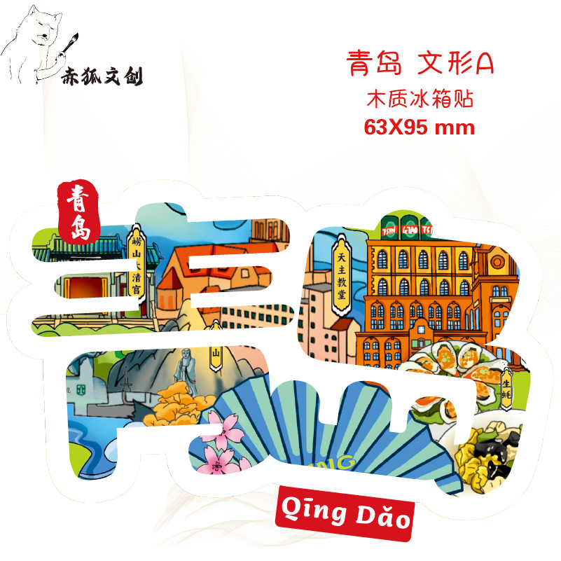 산동 칭다오 냉장고 자석 나무 자석 장식 스티커 웨이하이 옌타이 관광 기념품 관광지 문화 창작 냉장고 자석
