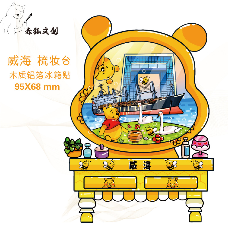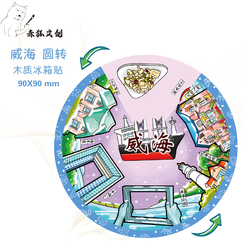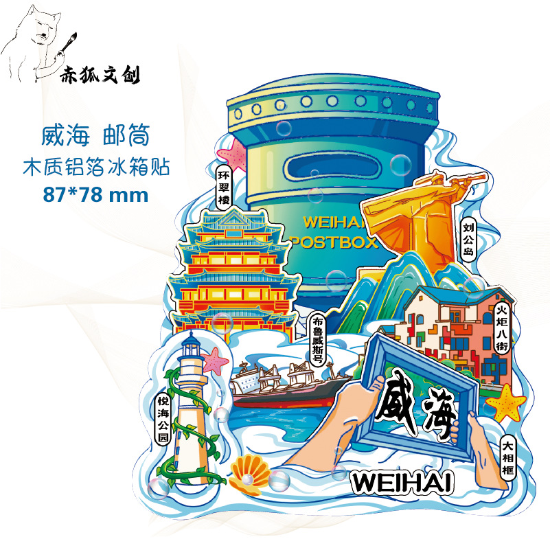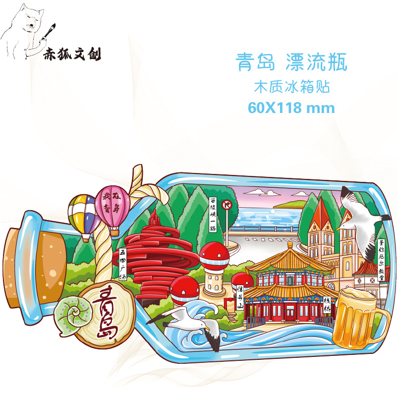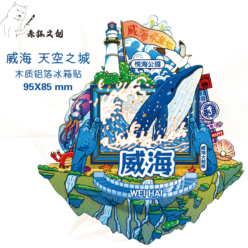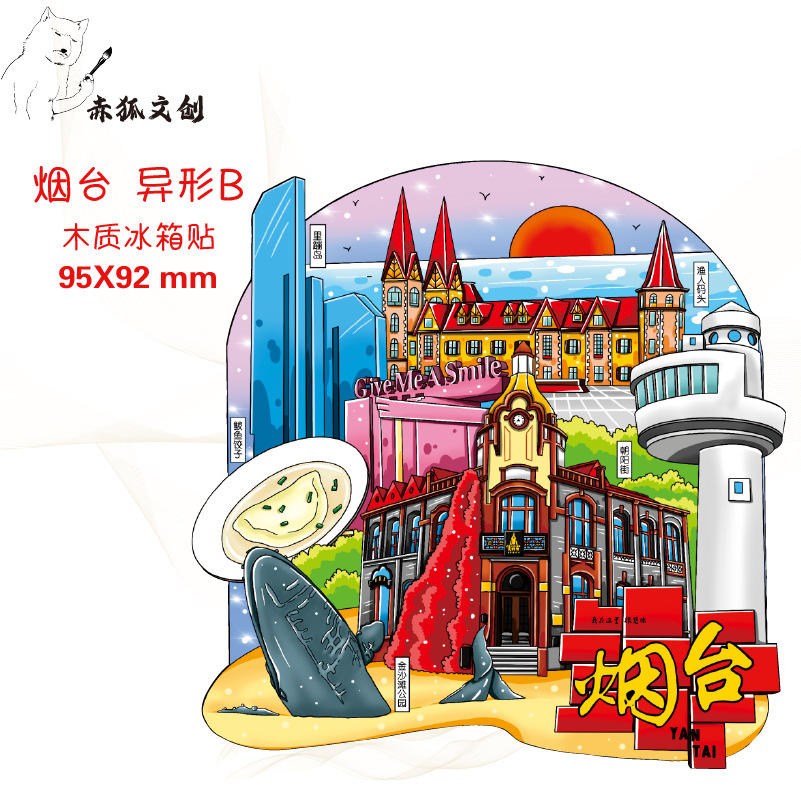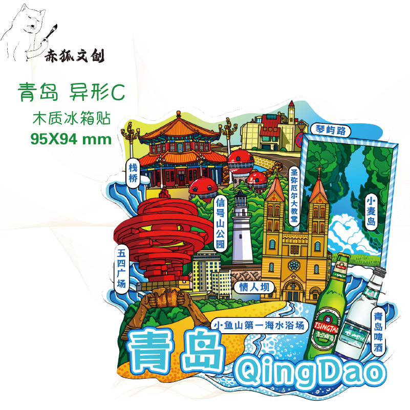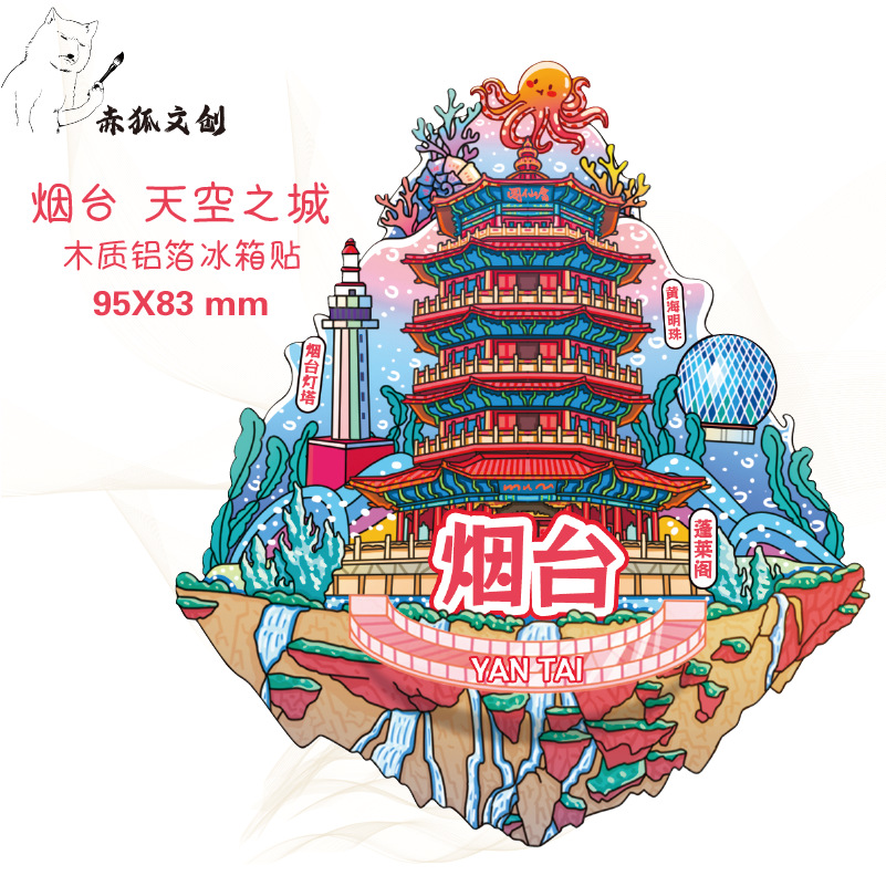 산동 칭다오 냉장고 자석 나무 자석 장식 스티커 웨이하이 옌타이 관광 기념품 관광지 문화 창작 냉장고 자석