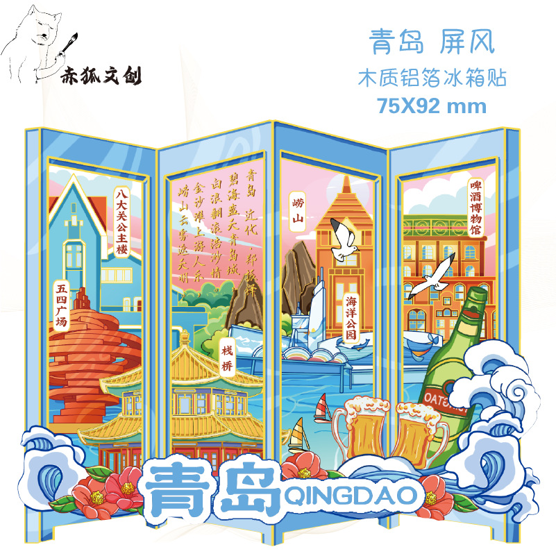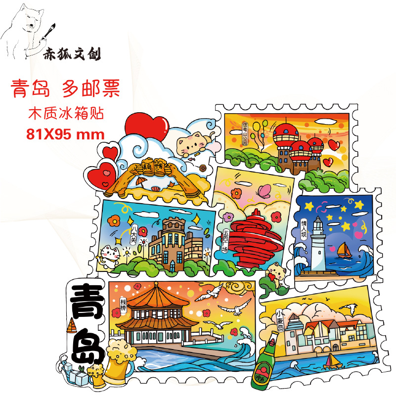 산동 칭다오 냉장고 자석 나무 자석 장식 스티커 웨이하이 옌타이 관광 기념품 관광지 문화 창작 냉장고 자석스토어 가기