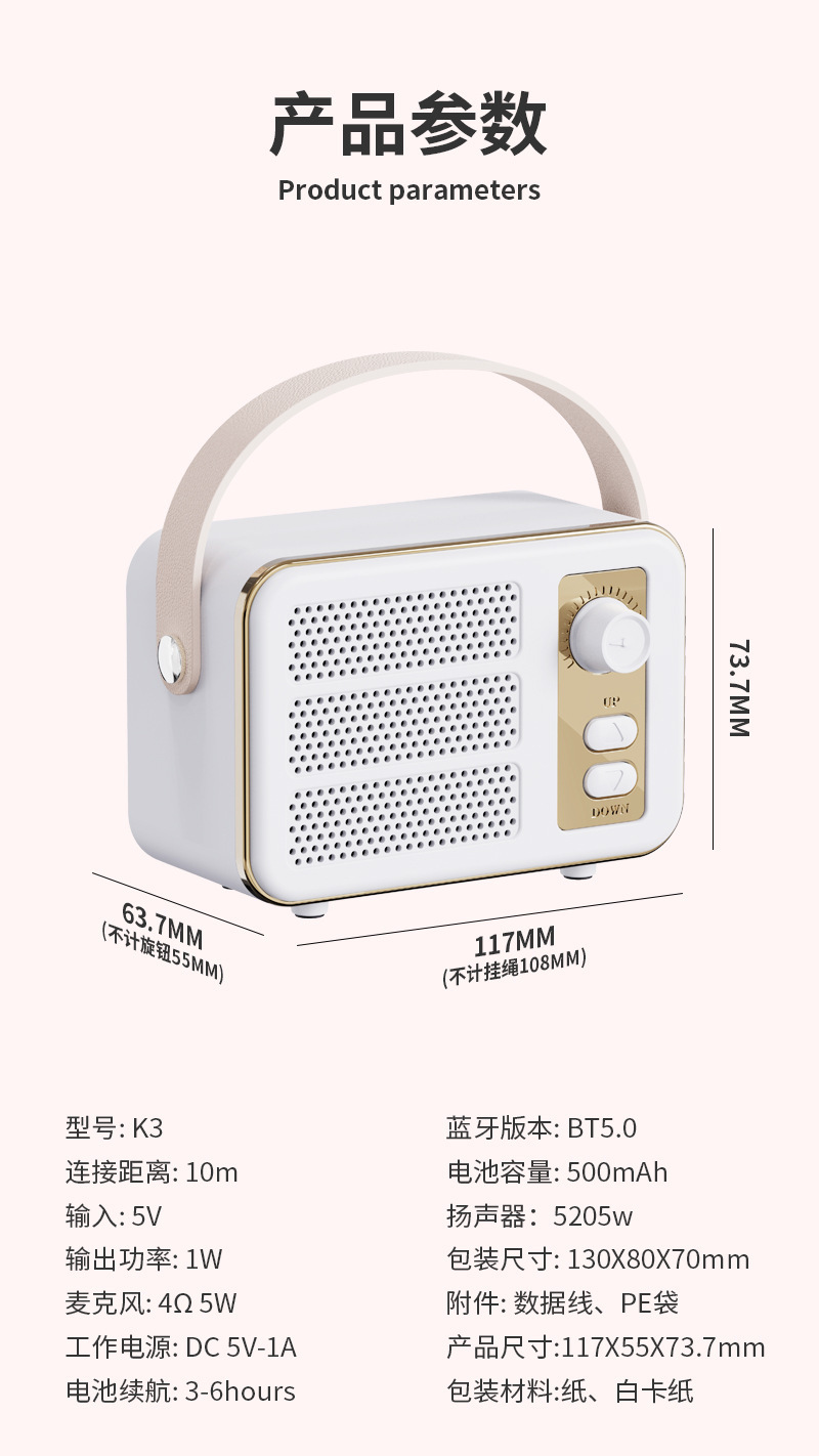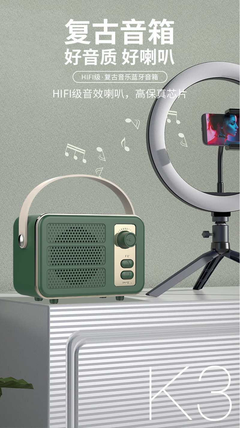새로운 K3 레트로 블루투스 스피커 서브 우퍼 TWS 상호 연결 미니 오디오 무선 고품질 카드 오디오