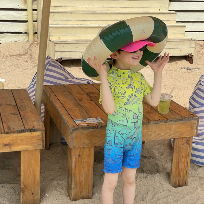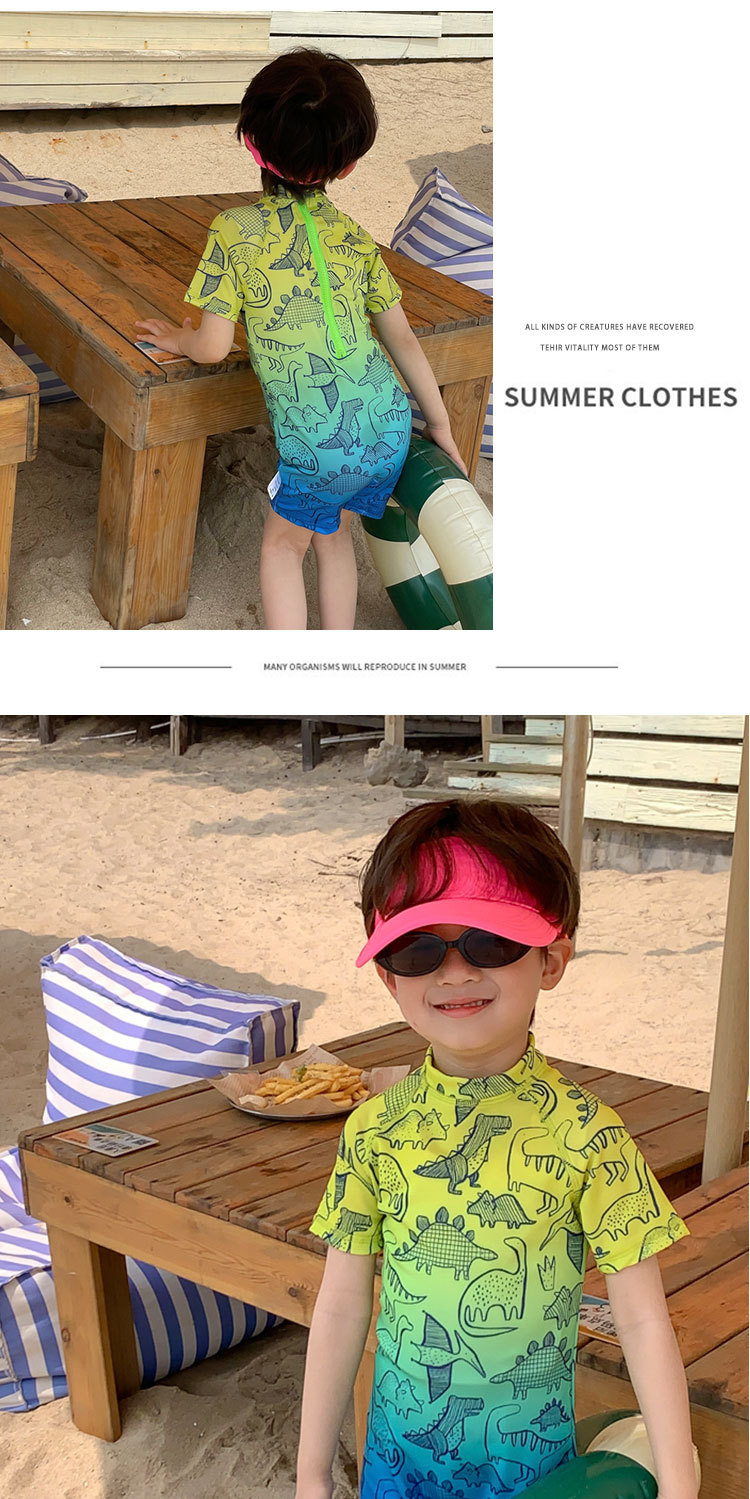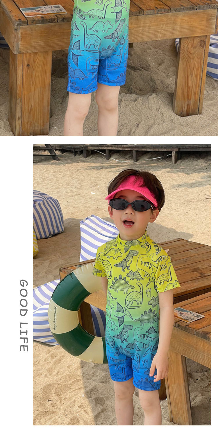 어린이 원피스 수영복 여름 소년 잘 생긴 공룡 어린이 반팔 빠른 건조 해변 휴가 수영복스토어 가기