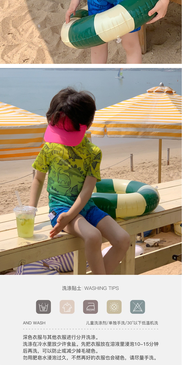 어린이 원피스 수영복 여름 소년 잘 생긴 공룡 어린이 반팔 빠른 건조 해변 휴가 수영복