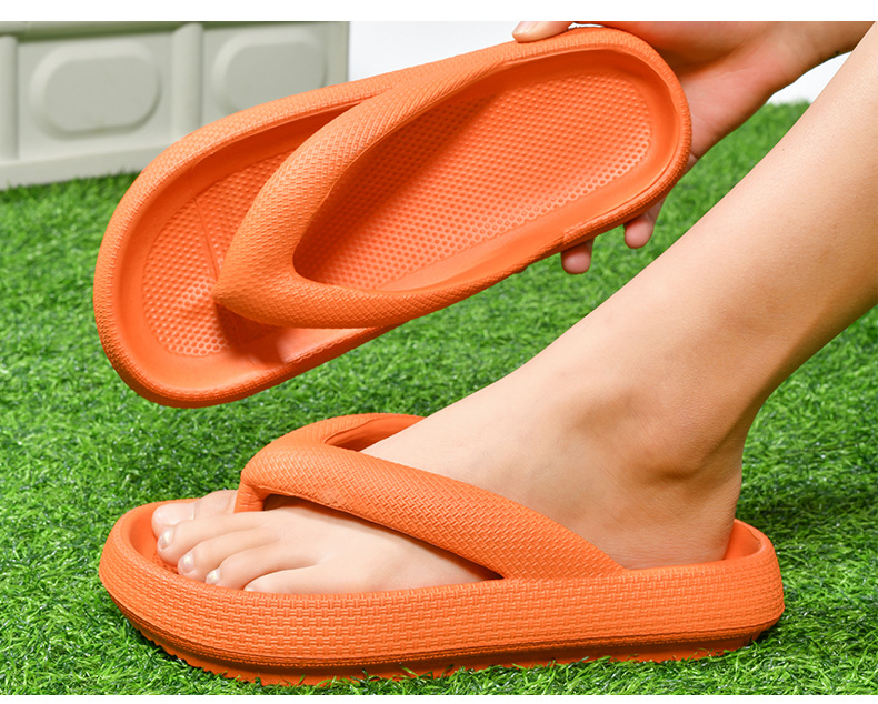 커플 스타일 솔리드 컬러 플립 플롭 두꺼운 바닥 남성과 여성 슬리퍼 여름 통기성 대형 미끄럼 방지 디자인 패션 부드러운 바닥