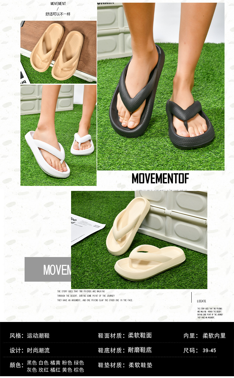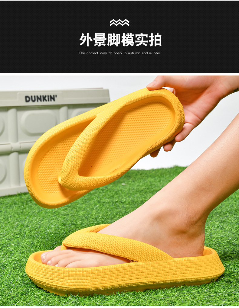 커플 스타일 솔리드 컬러 플립 플롭 두꺼운 바닥 남성과 여성 슬리퍼 여름 통기성 대형 미끄럼 방지 디자인 패션 부드러운 바닥스토어 가기