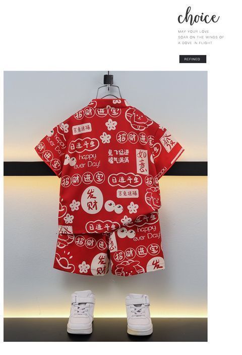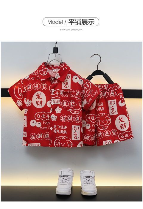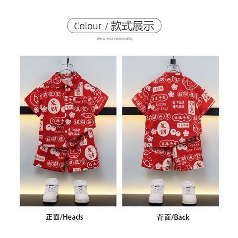 소년의 여름 셔츠 세트 2024 새로운 서양식 아기 반팔 셔츠 옷 어린이 여름 시원한 잘 생긴 투피스 세트스토어 가기