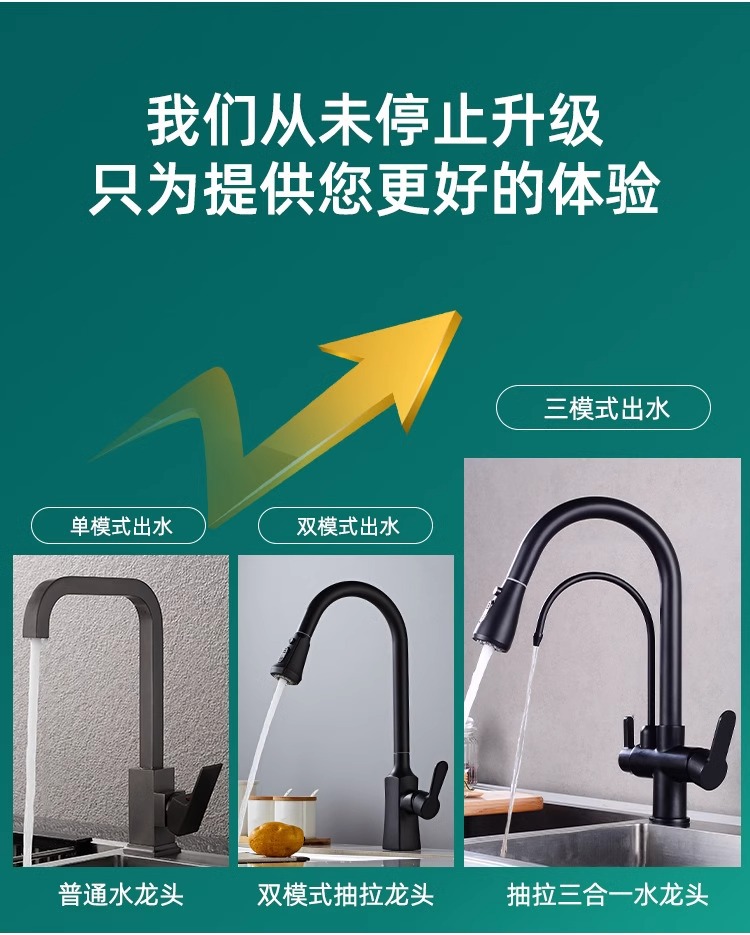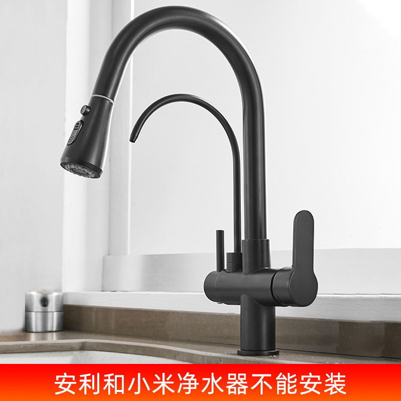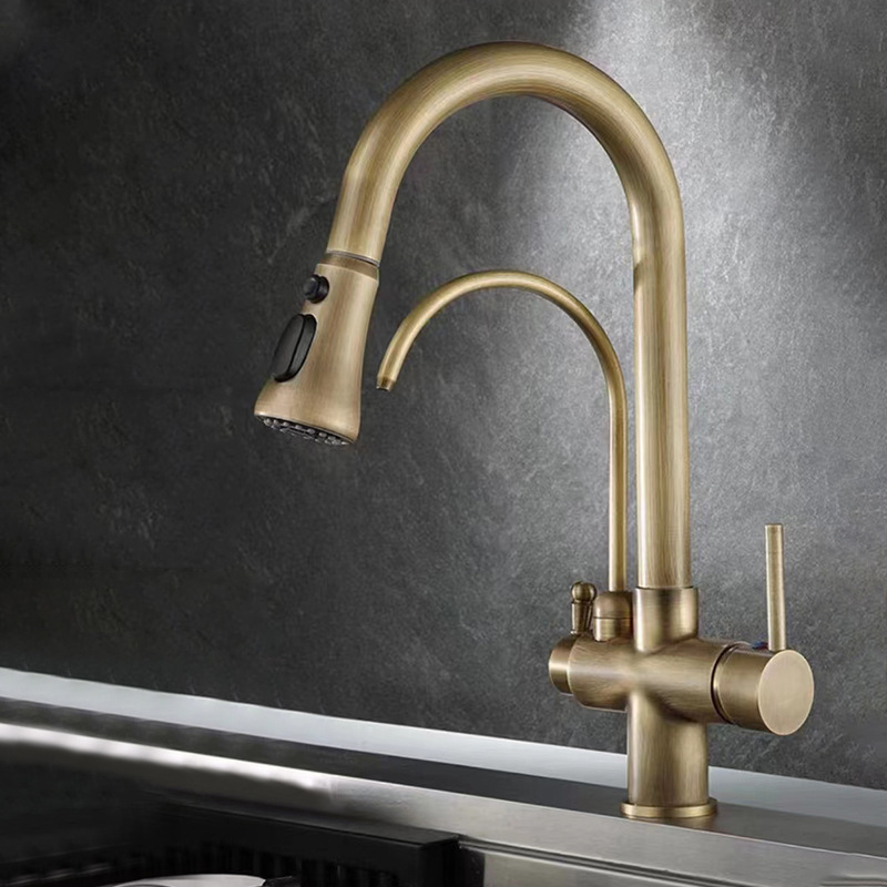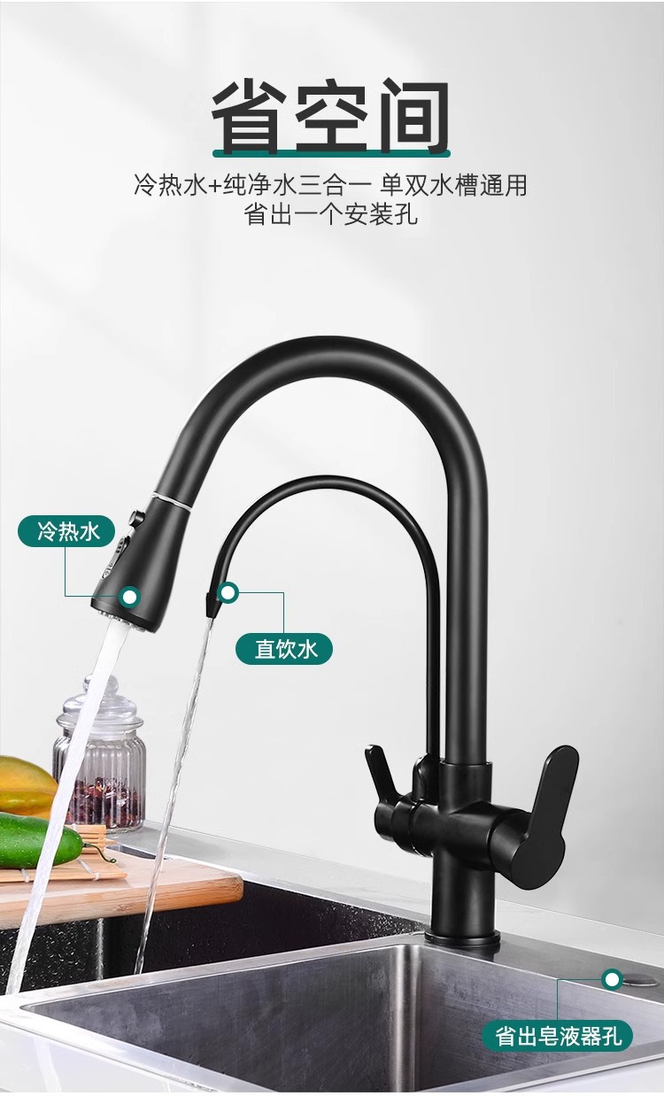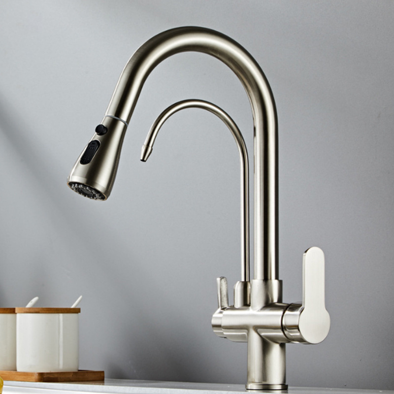 총 회색 주방 풀 아웃 3 대 1 정수기 수도꼭지 뜨겁고 차가운 이중 물 세척 분지 싱크대스토어 가기