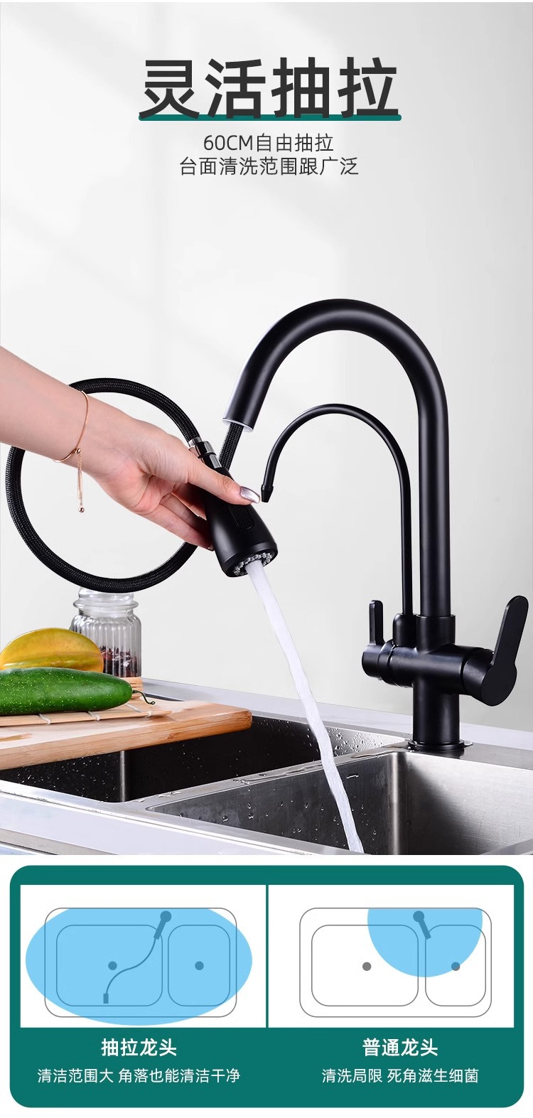 • 우아한 블랙 (3 대 1 청소 수도꼭지)