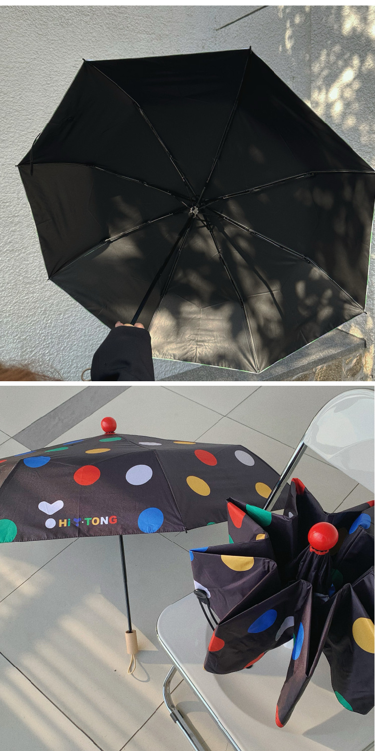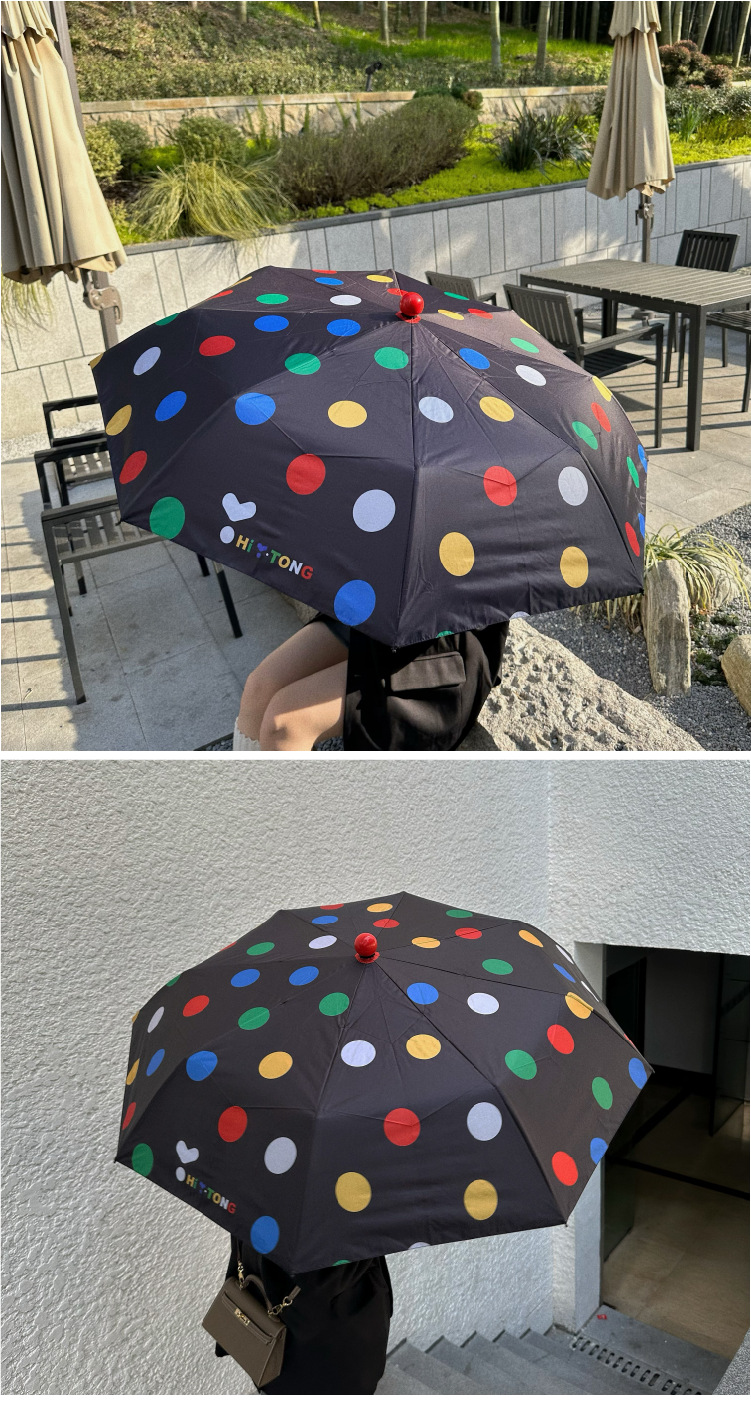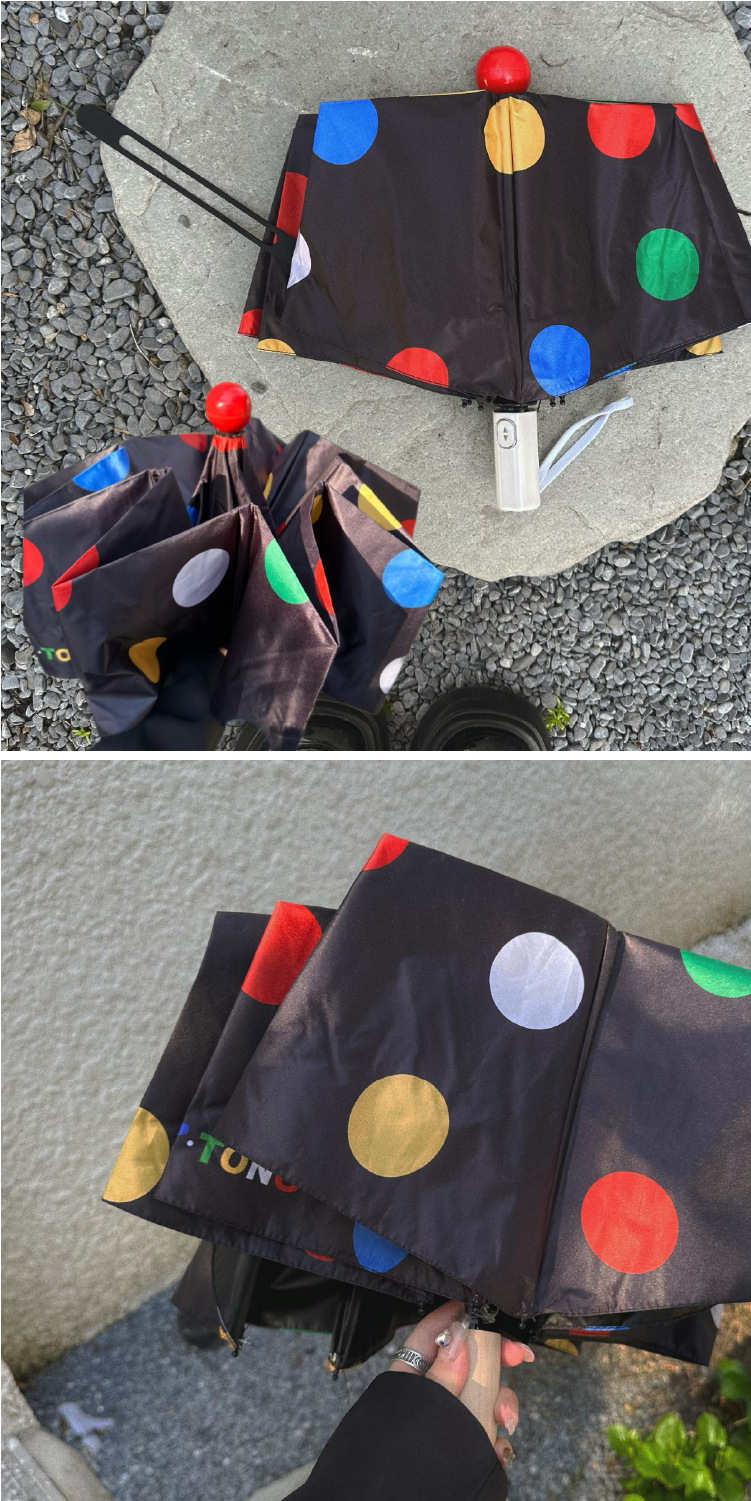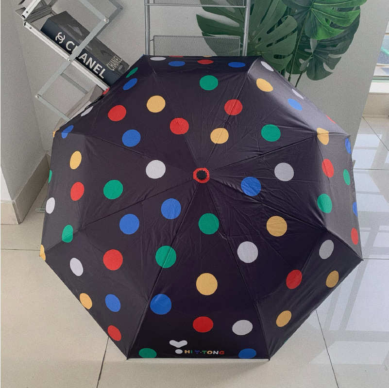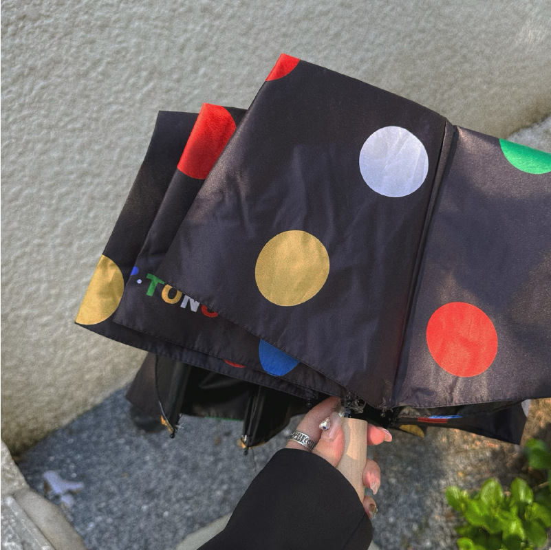 귀여운 신선한 예술적 스타일 자동 비 우산 검은 접착제 태양 보호 우산 휴대용 접이식 학생 우산