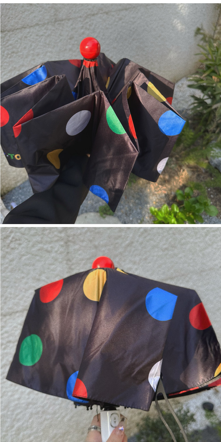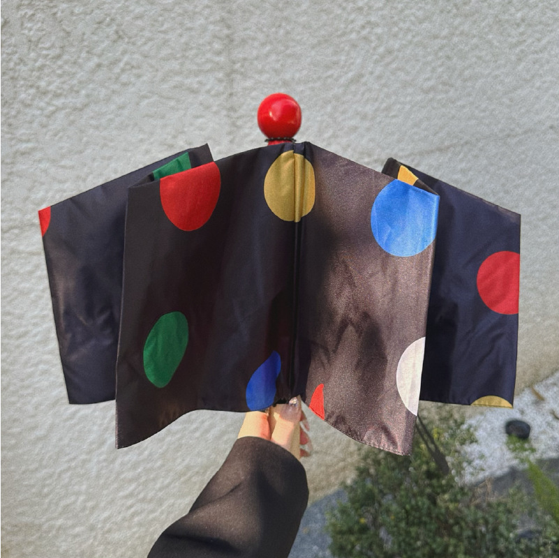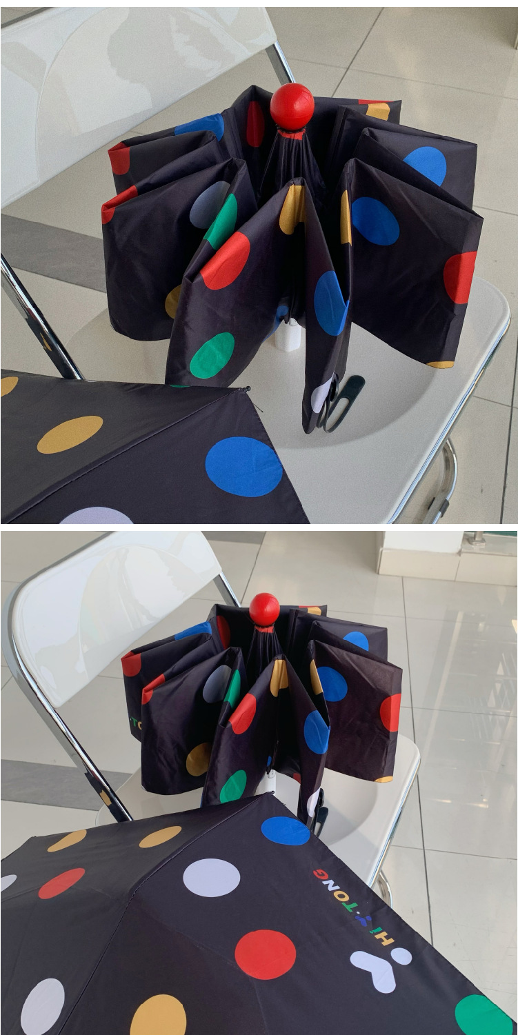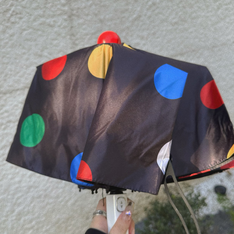 귀여운 신선한 예술적 스타일 자동 비 우산 검은 접착제 태양 보호 우산 휴대용 접이식 학생 우산