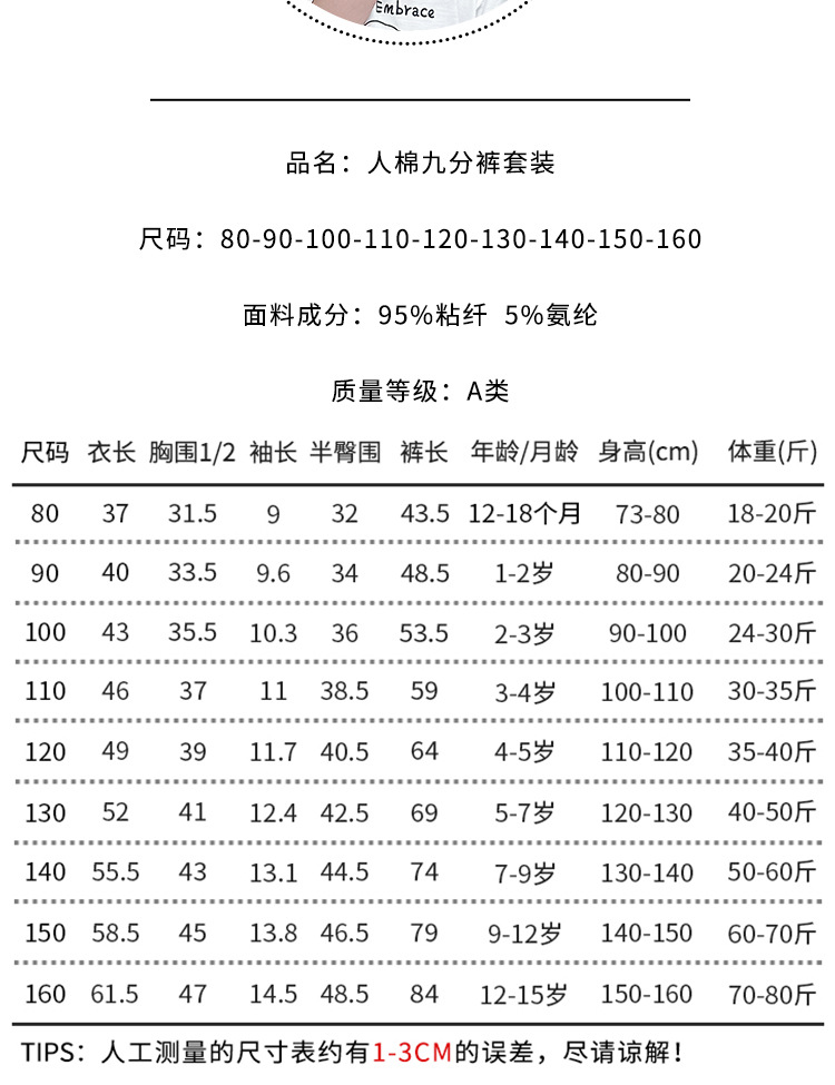 어린이 아이스 실크 코튼 파자마 소년 및 어린이 홈웨어 여름 소녀의 얇은 반소매 크롭 팬츠 세트 중 큰 어린이