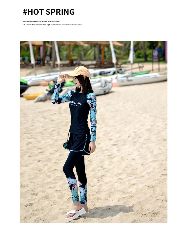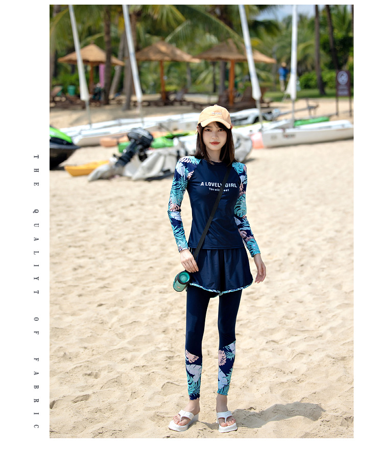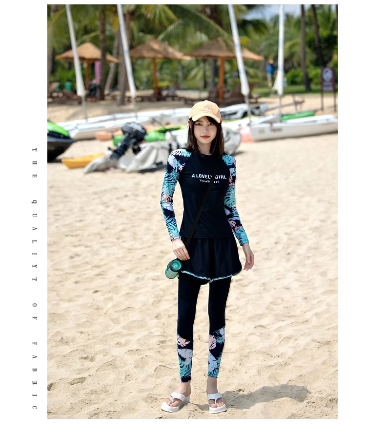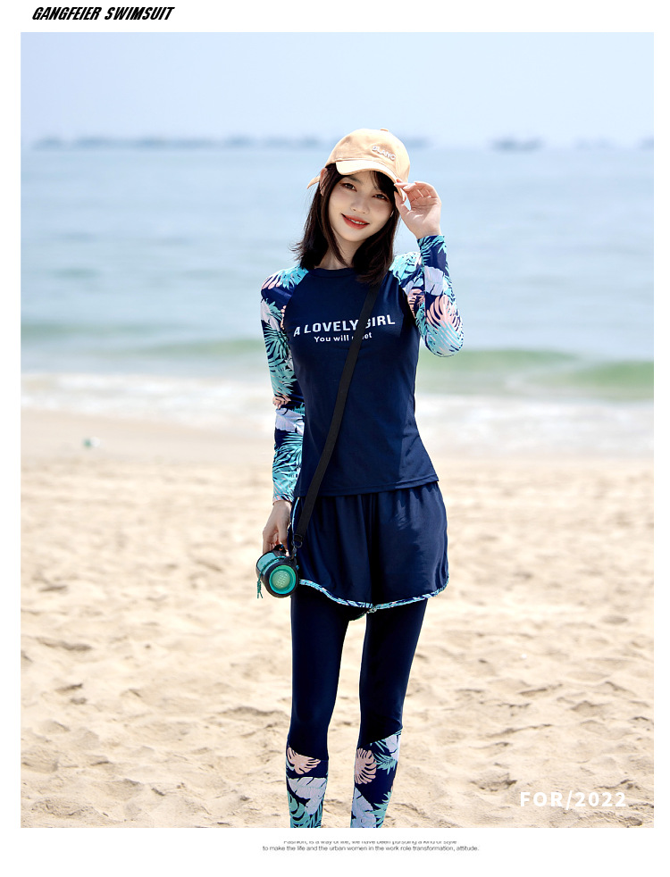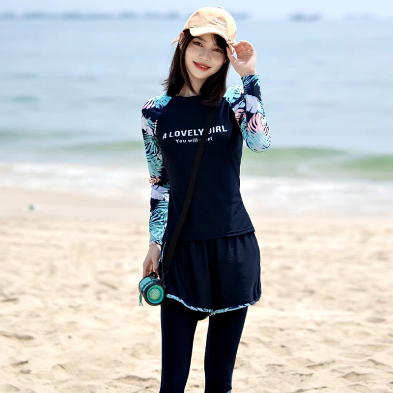 여성용 수영복 스플릿 2025 새로운 보수적 인 긴팔 바지 3 피스 슬리밍 배 커버 다이빙 온천 서핑