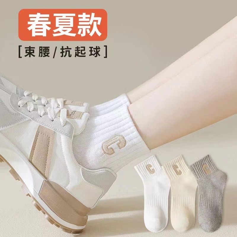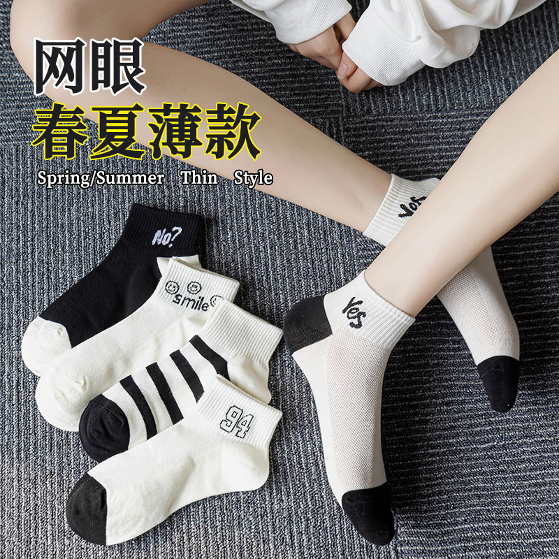 여름 단색 중반 송아지 스포츠 양말 트렌디 한 얇은 여성 양말 통기성 편지 여성 보트 양말 여성을위한 새로운 양말스토어 가기