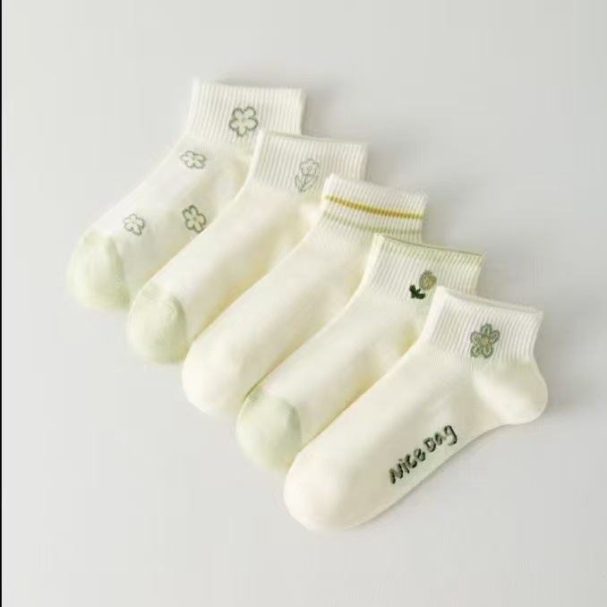 • D246 여성용 양말 [메쉬 그린 플라워]