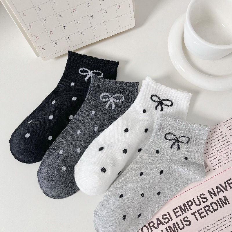 • 새로운 여성용 양말 4가지 색상 랜덤 추가 1켤레 [땡땡이 리본]