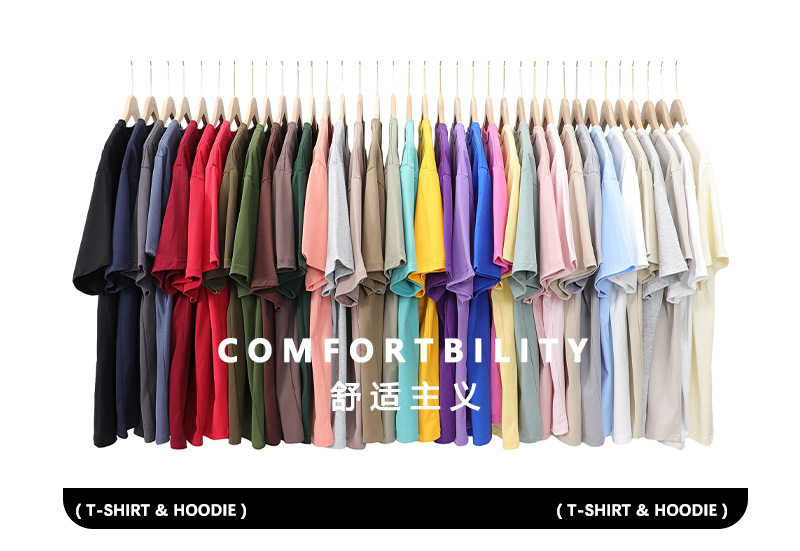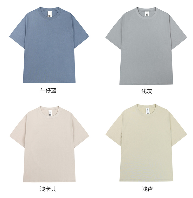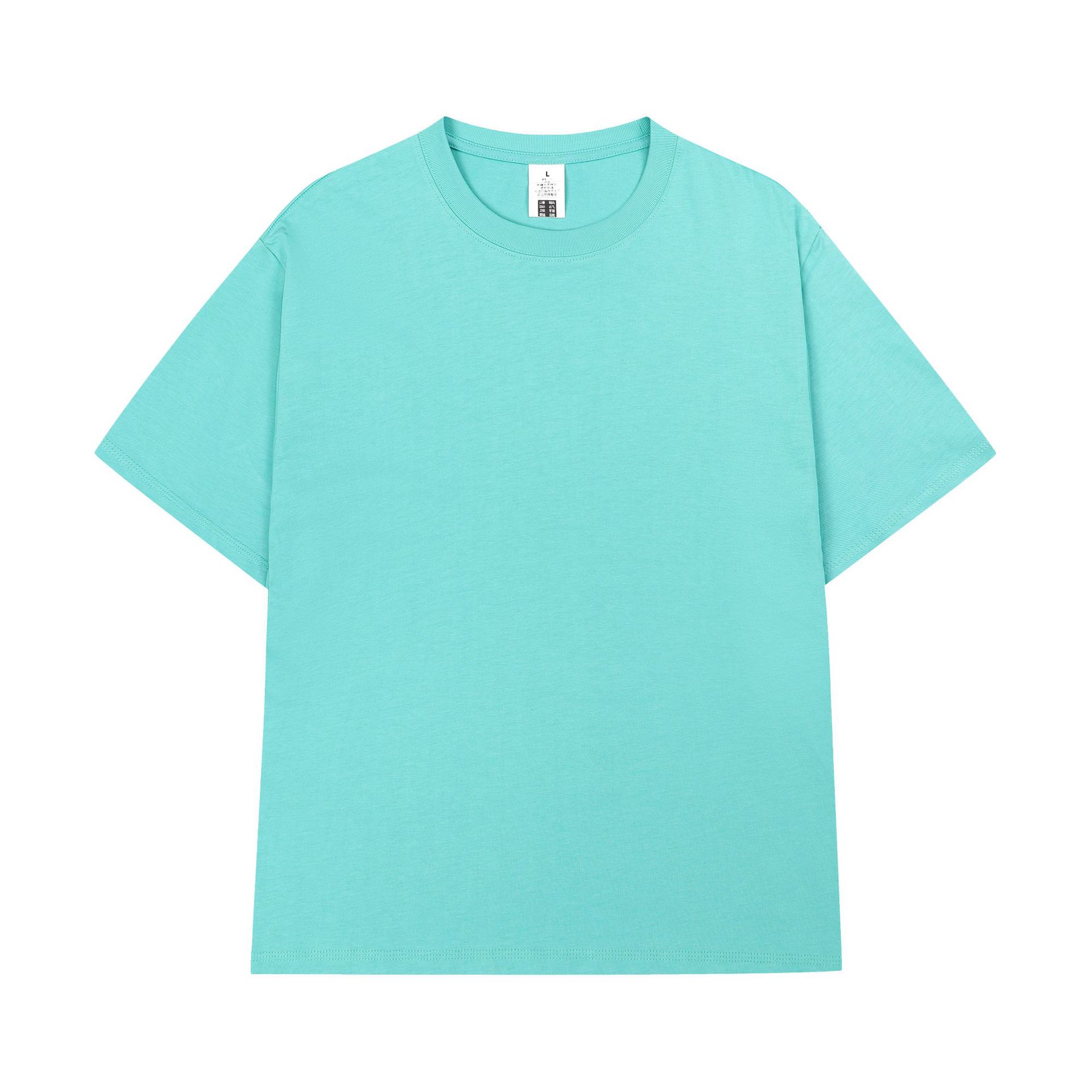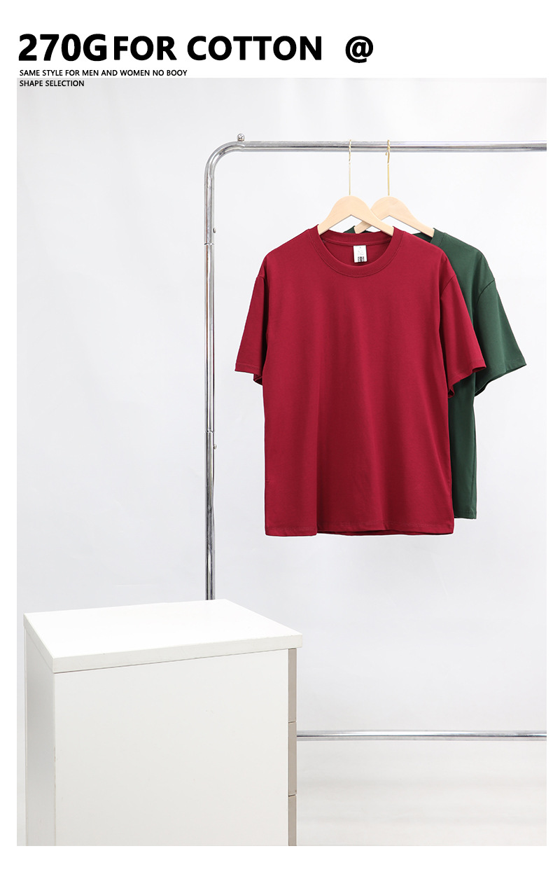 헤비 270g 코튼 라운드 넥 드롭 숄더 짧은 소매 단색 간단한 올 매치 티셔츠 패션 브랜드 캐주얼 루즈 탑 여성 여름스토어 가기
