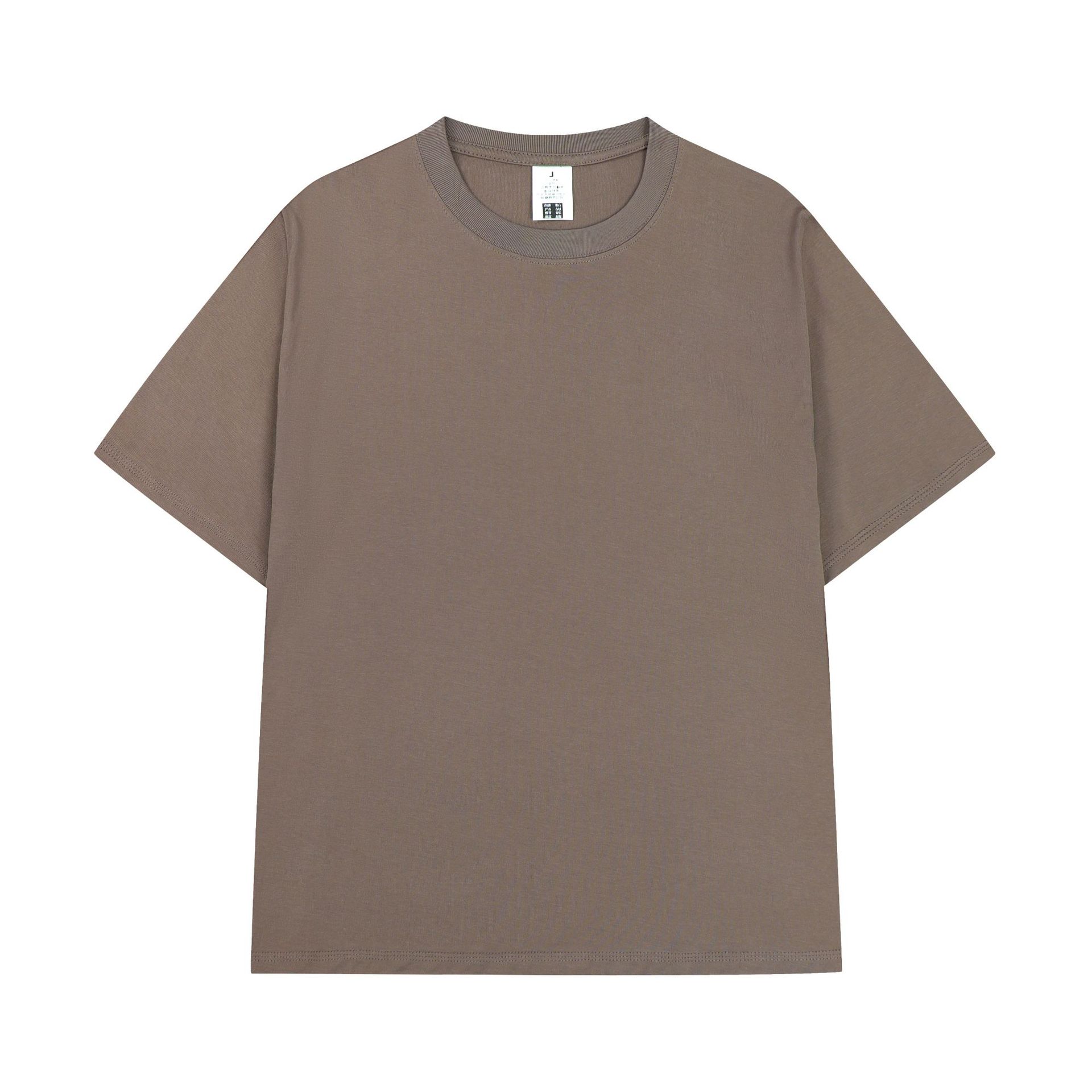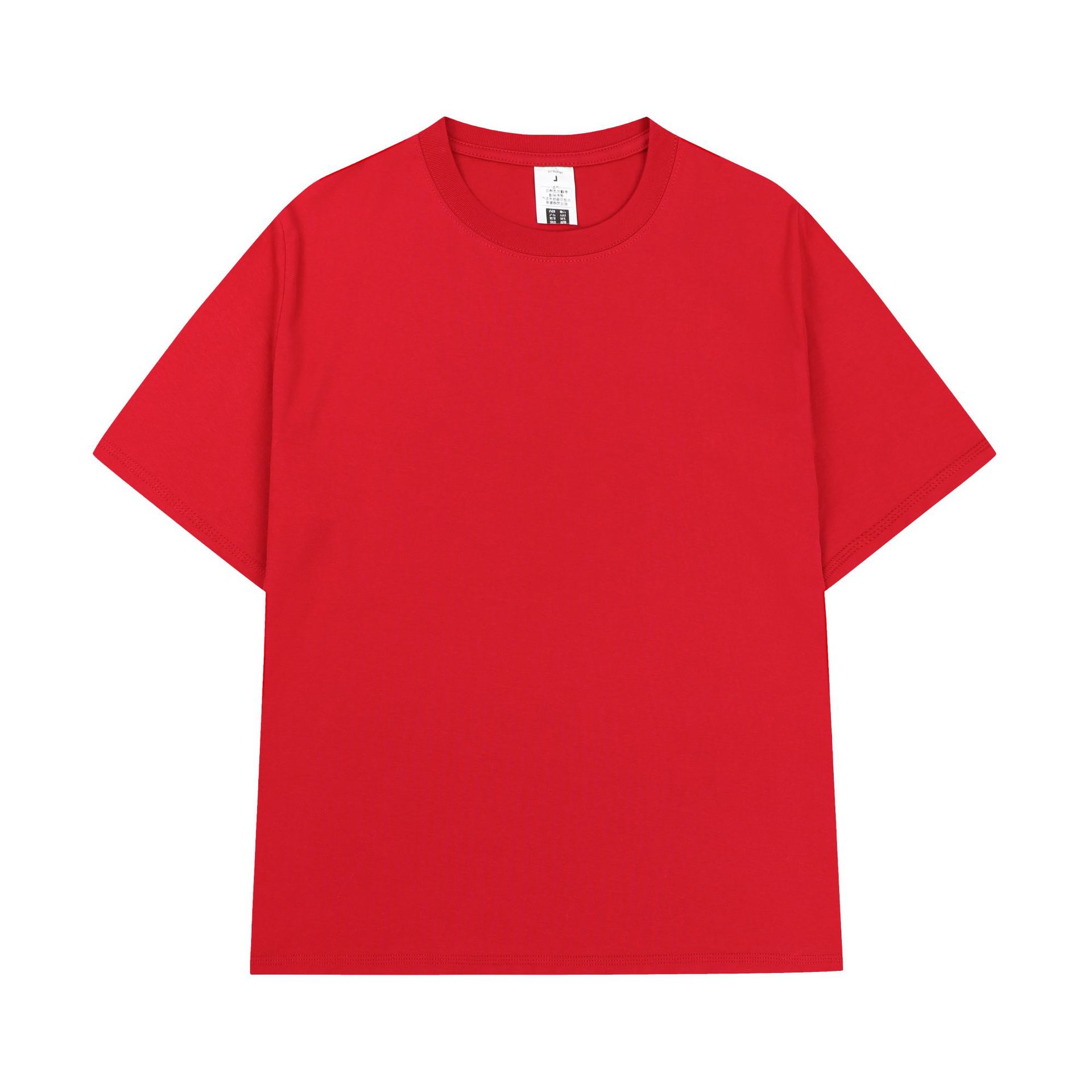 헤비 270g 코튼 라운드 넥 드롭 숄더 짧은 소매 단색 간단한 올 매치 티셔츠 패션 브랜드 캐주얼 루즈 탑 여성 여름