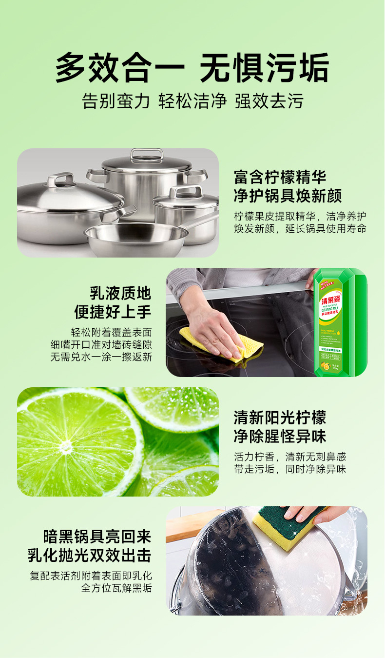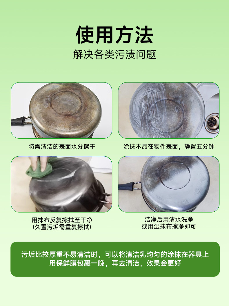 Qinglaizi 주방 다기능 청소 우유 냄비 하단 검은 색 제거 냄비 인공물 스테인레스 스틸 오염 제거 검은 먼지 제거 에이전트 공장