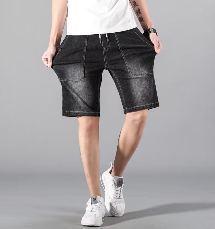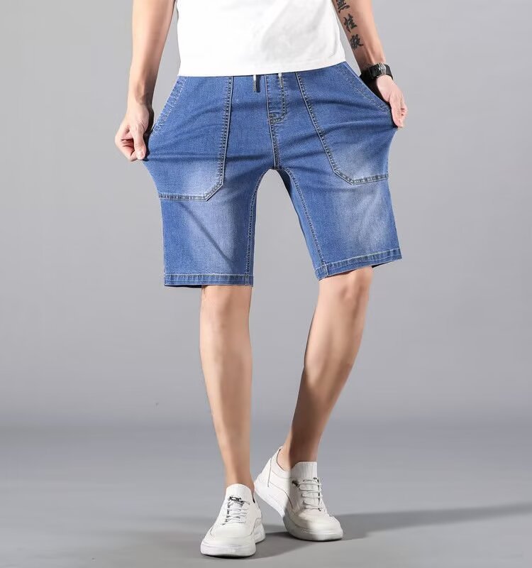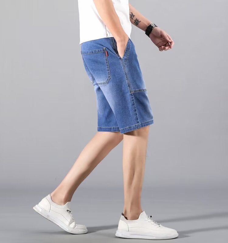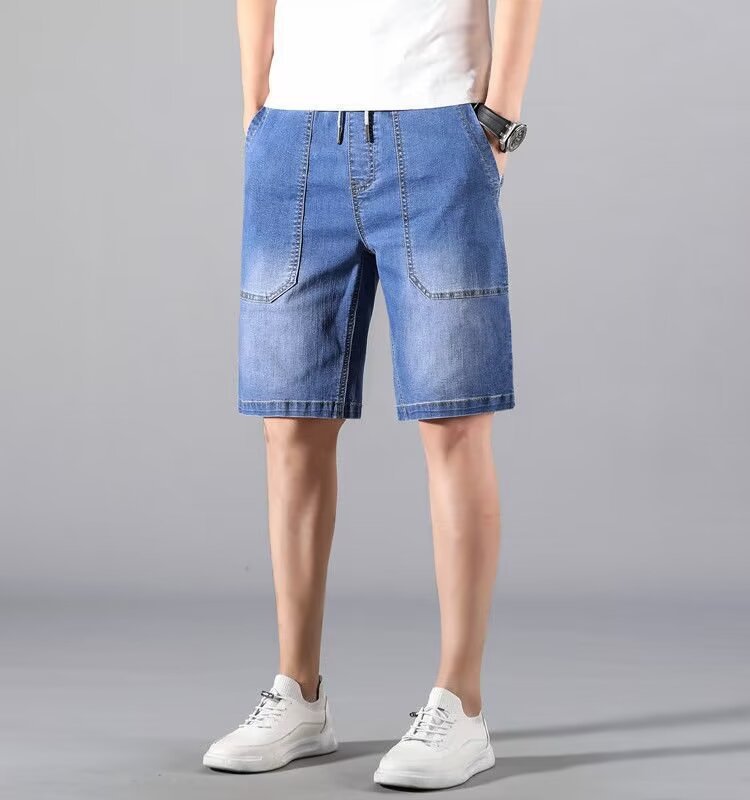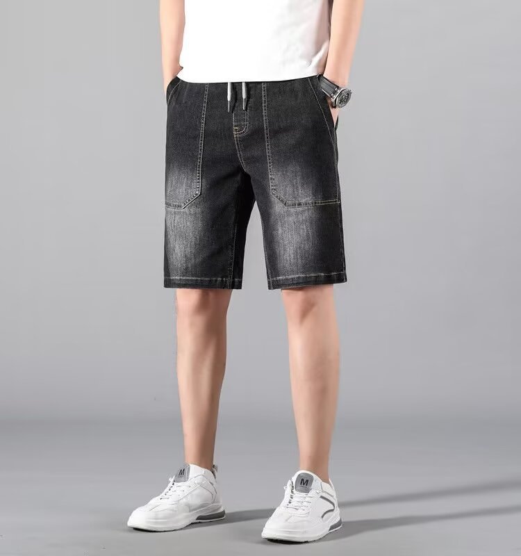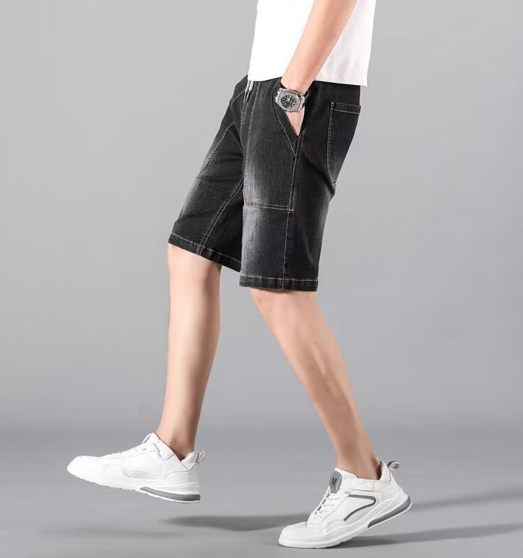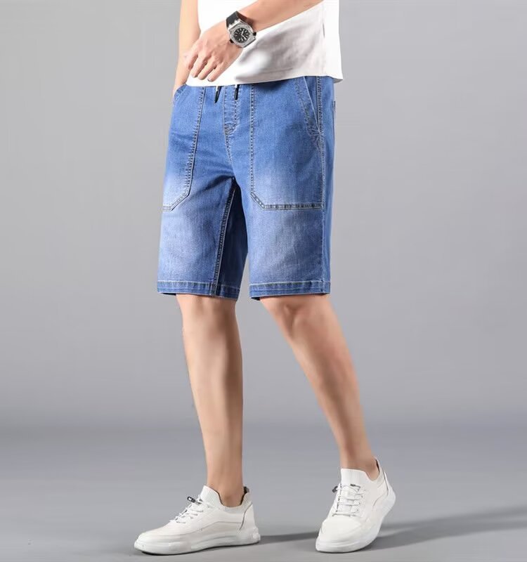 여름 얇은 데님 반바지 남성 자른 바지 느슨한 스트레이트 2024 새로운 패션 브랜드 스티칭 캐주얼 바지스토어 가기