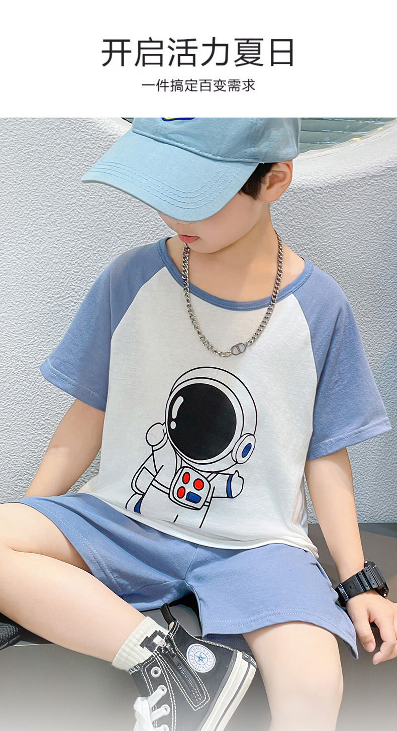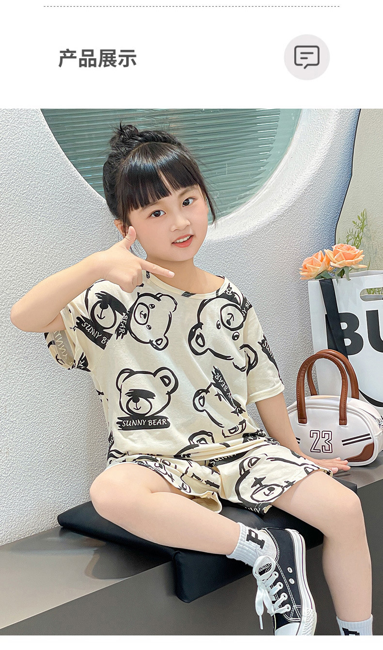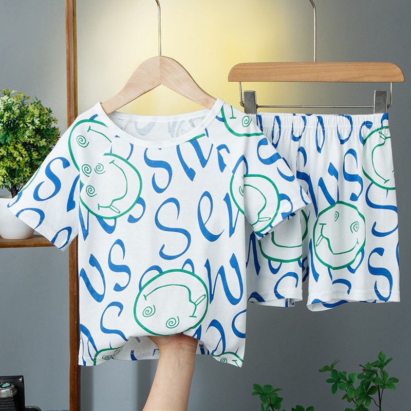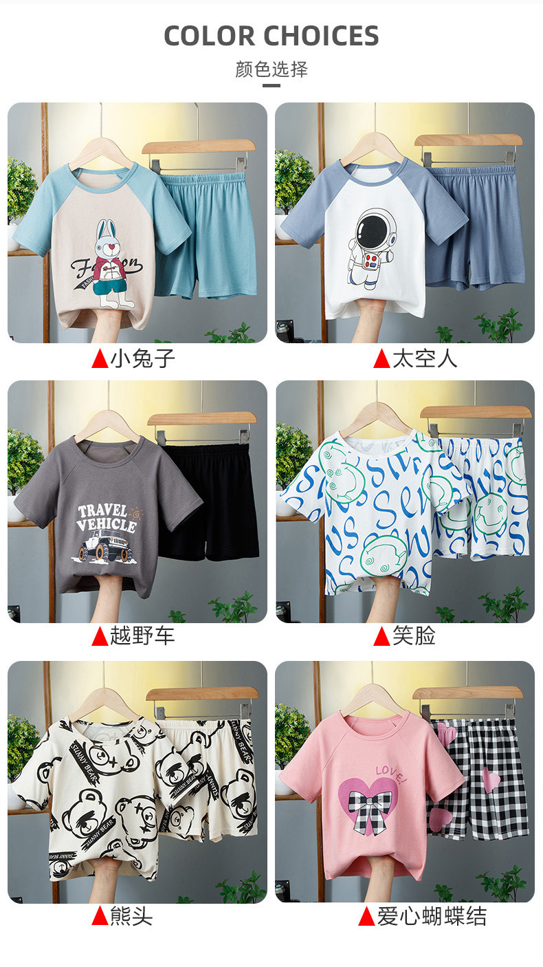 어린이 잠옷 봄 여름 순면 소년 '작고 중대형 어린이 캐주얼 반팔 스포츠 세트 여아 얇은 집 옷스토어 가기