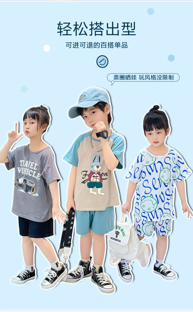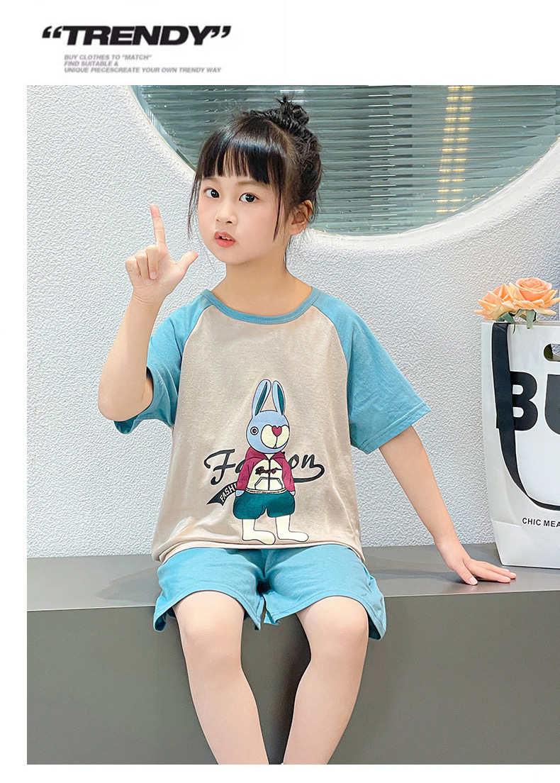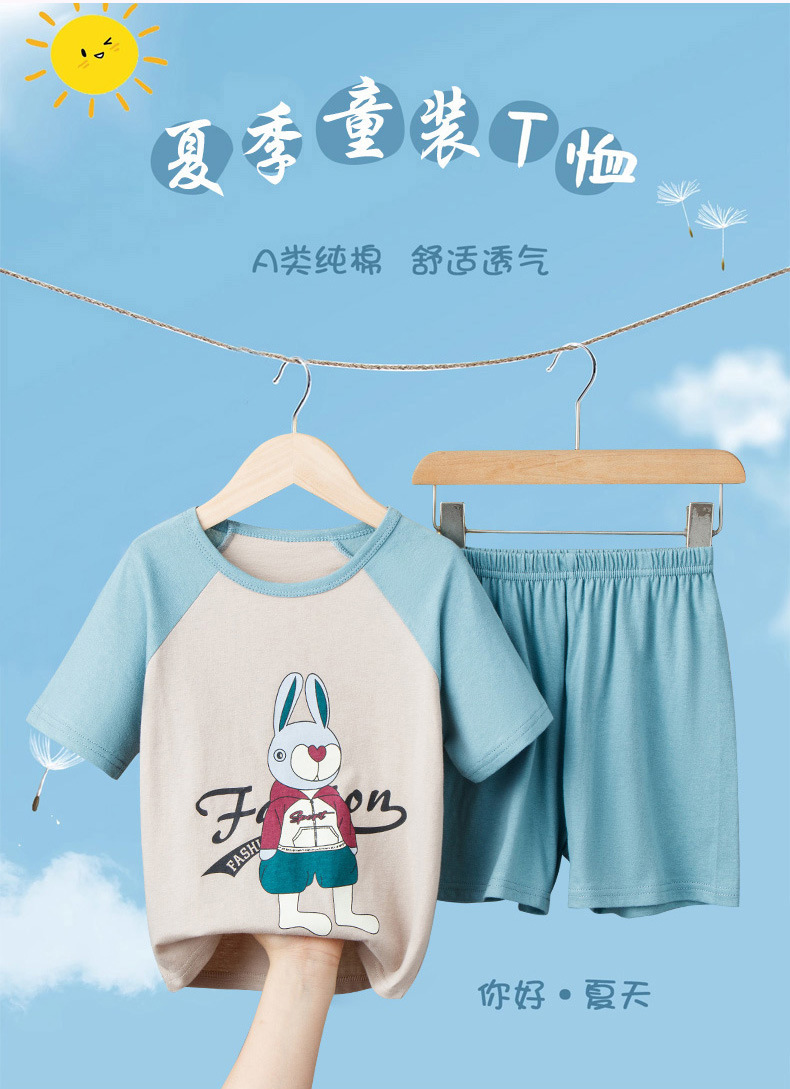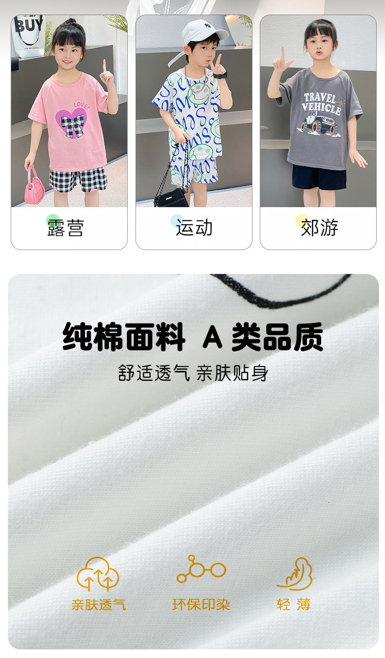 어린이 잠옷 봄 여름 순면 소년 '작고 중대형 어린이 캐주얼 반팔 스포츠 세트 여아 얇은 집 옷스토어 가기