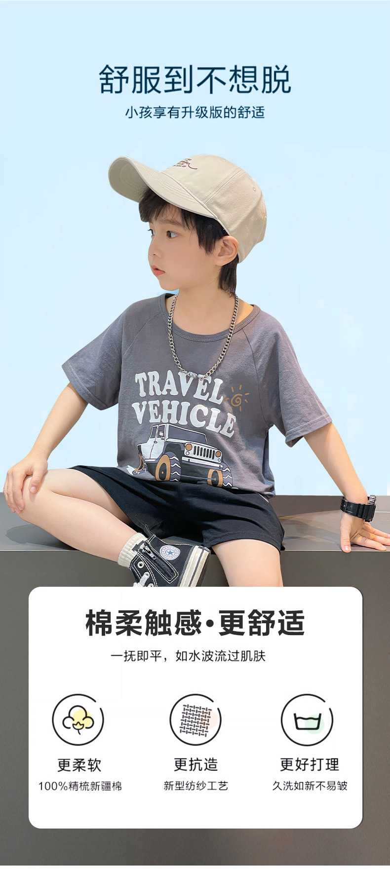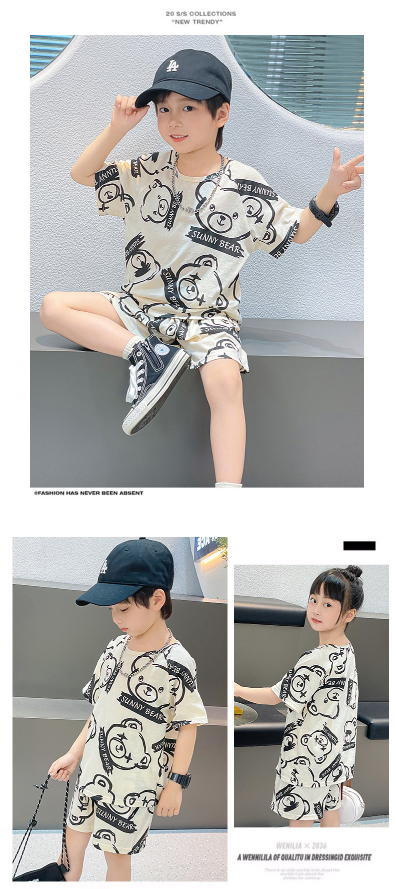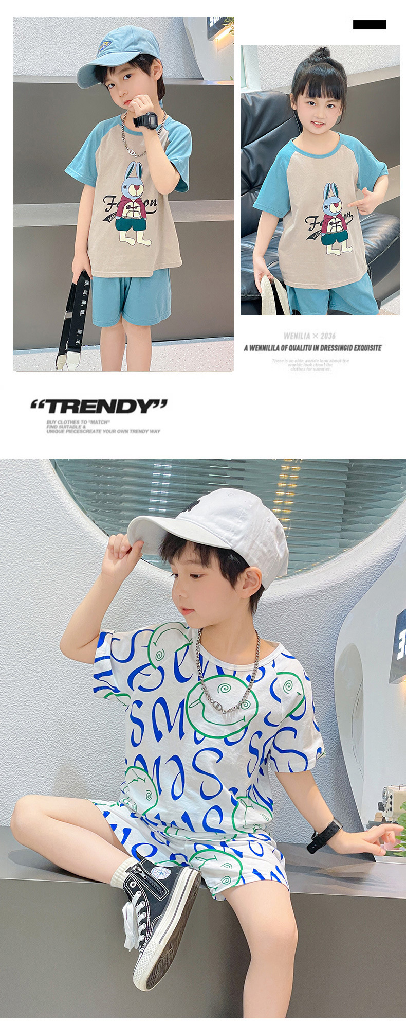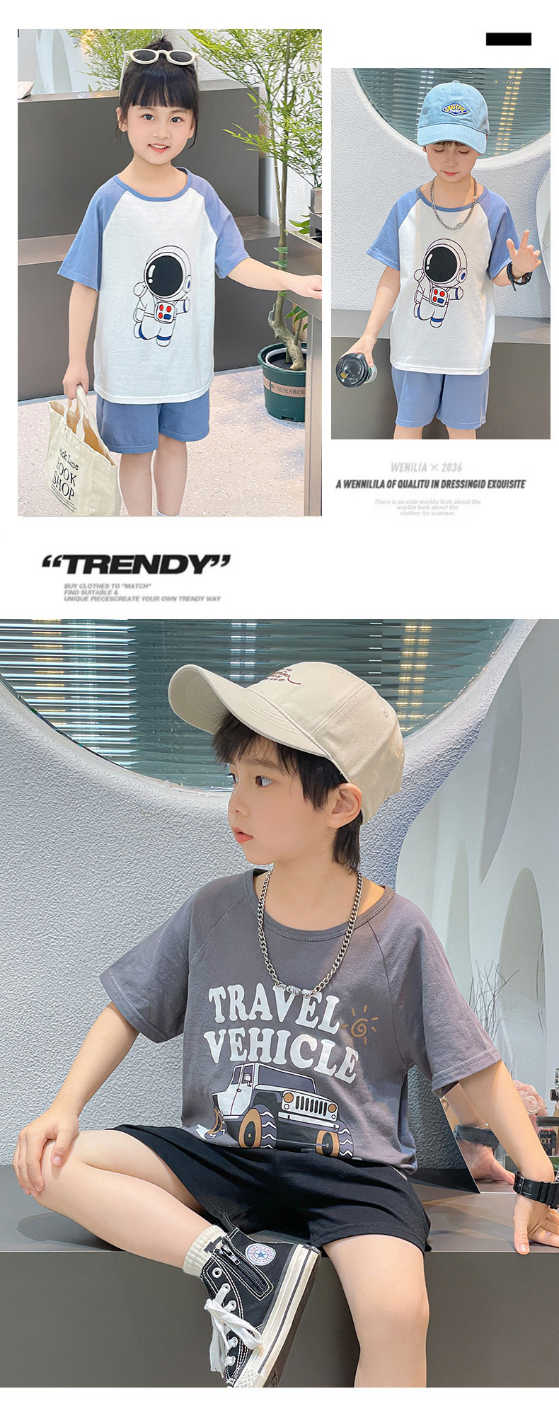 어린이 잠옷 봄 여름 순면 소년 '작고 중대형 어린이 캐주얼 반팔 스포츠 세트 여아 얇은 집 옷스토어 가기