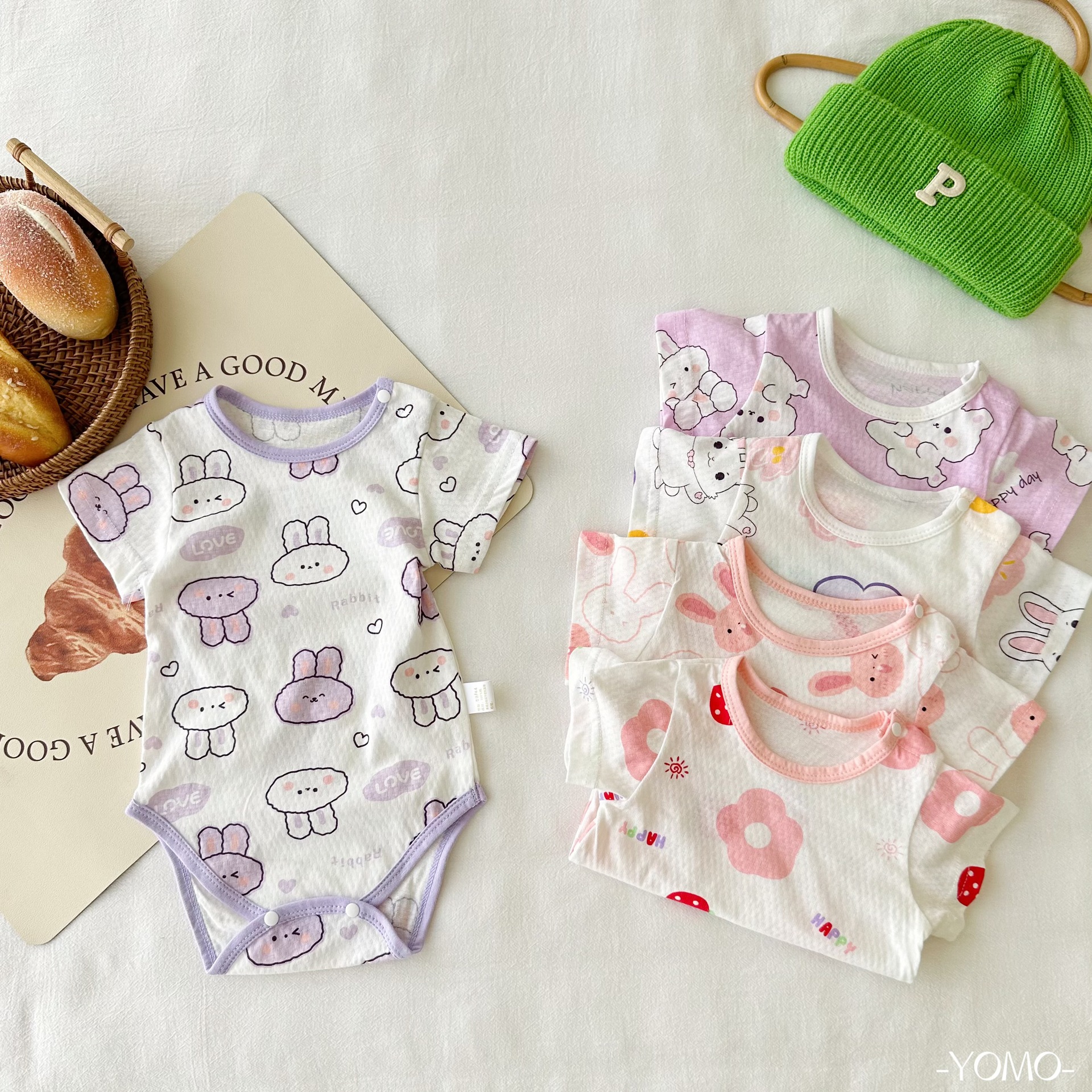【재고 부족 시 랜덤 발송】YM2966 만화 캐릭터 순면 메쉬 바디수트【3개 이상 구매 가능】