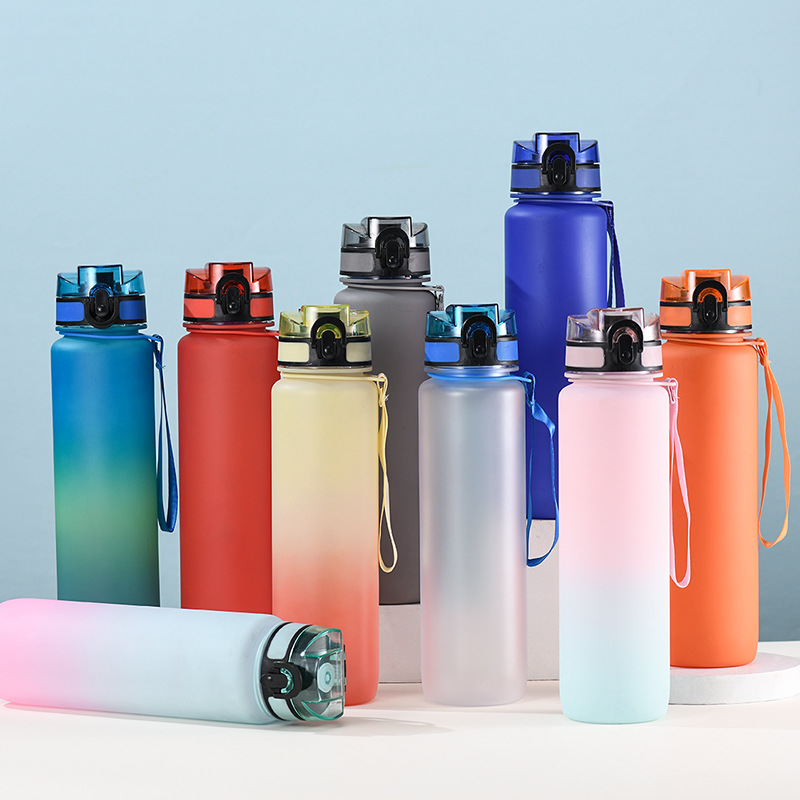 국경 간 대용량 공간 냄비 야외 플라스틱 컵 1000ML 그라디언트 컬러 높은 색상 값 튀는 짚 로프스토어 가기