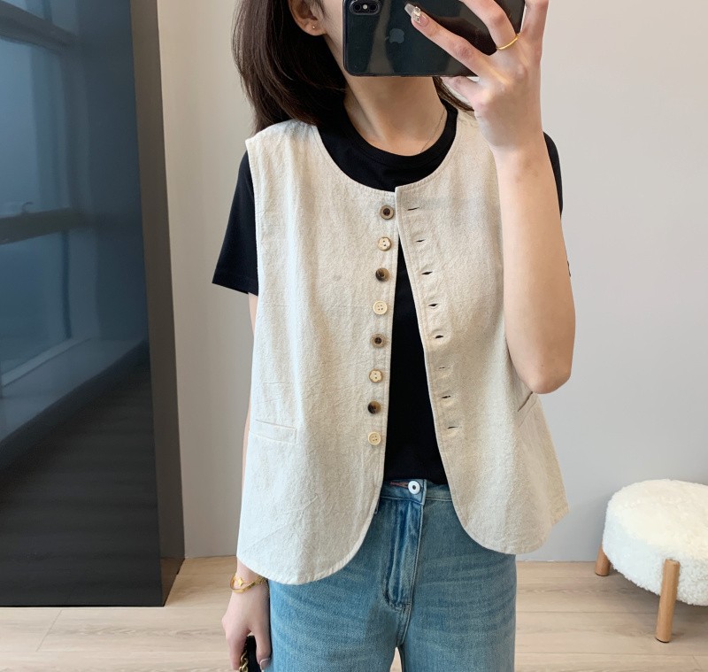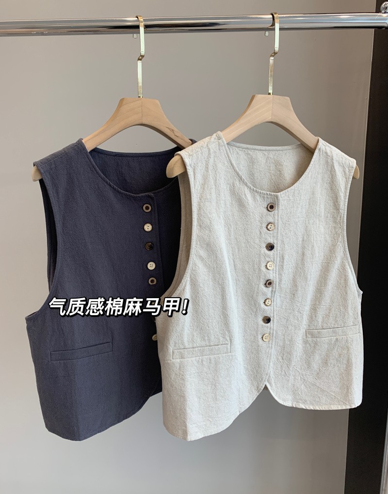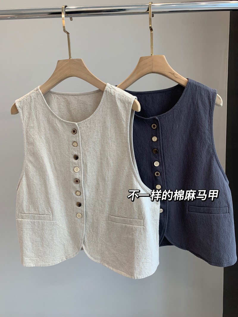 大工厂新款! 春夏新!文艺复古风棉麻马甲背心!