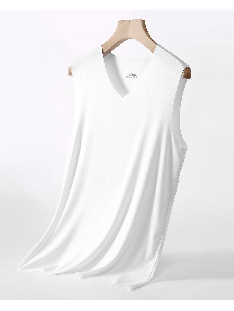 남자 Tracless Ice Silk Vest 남자 여름 얇은 통기성 스트레치 꽉 넓은 어깨 청소년 학생 스웨트 셔츠 허들 화이트