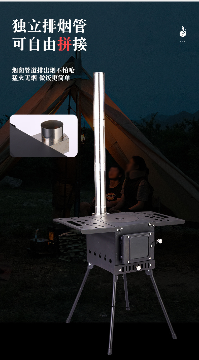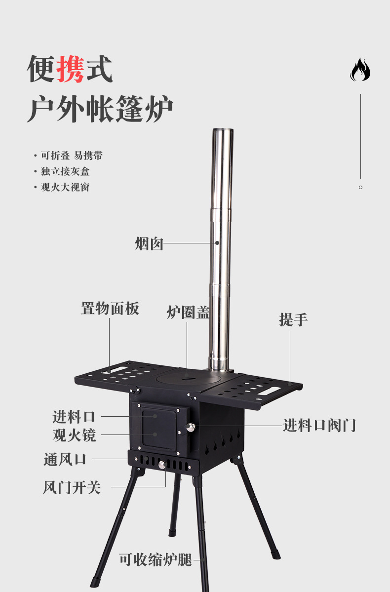 화재 여우 접이식 야외 캠핑 장작 스토브 캠핑 장작 스토브 텐트 난방 스토브 바베큐 스토브 도매스토어 가기