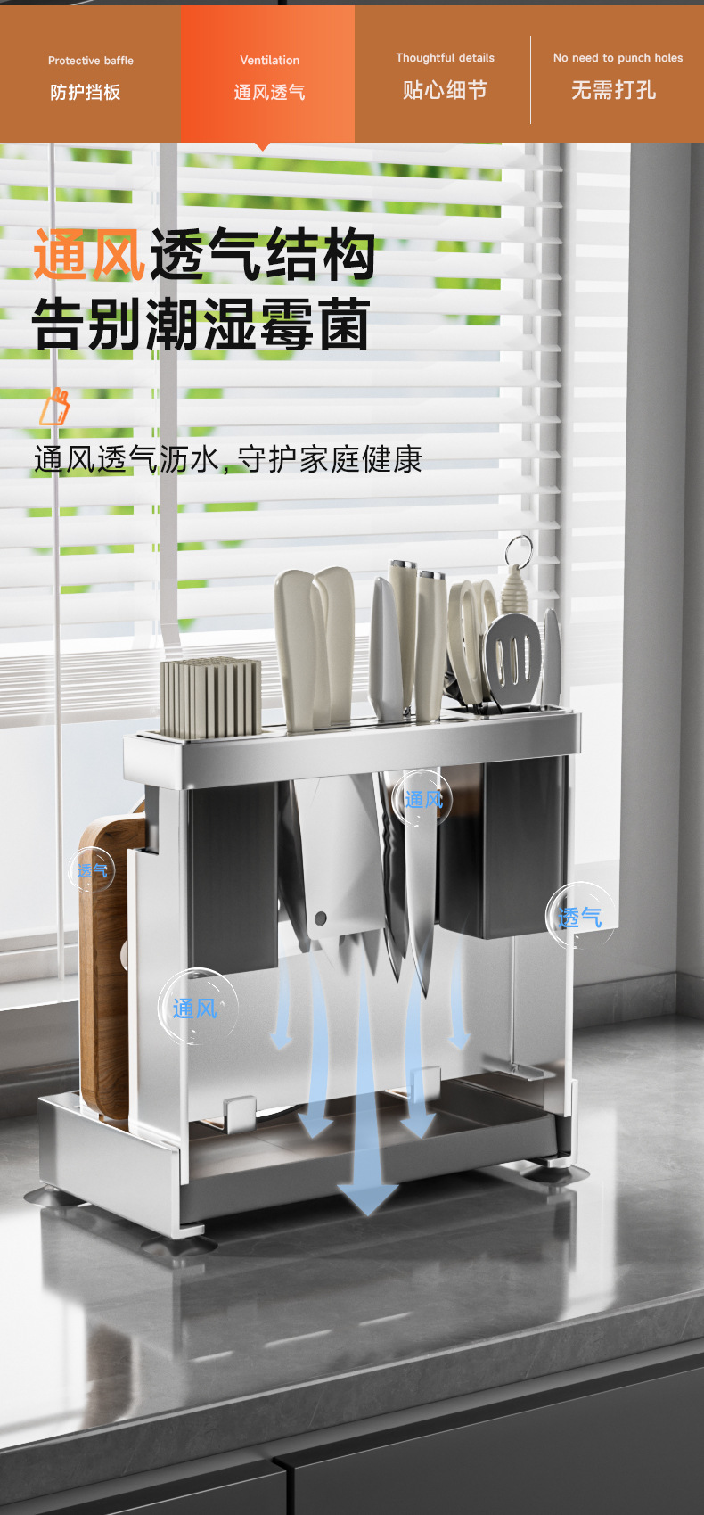 • 304 스테인레스 스틸 * 통합 다기능 나이프 홀더 * 벽 교수형