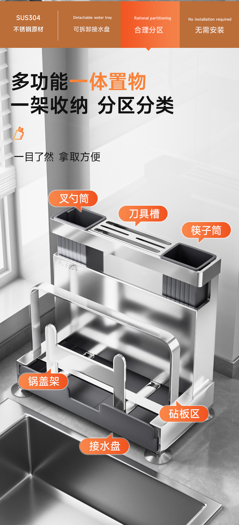 304 스테인레스 스틸 다기능 나이프 젓가락 저장 랙 주방 칼 도마 냄비 커버 랙 젓가락 케이지 젓가락 케이지 젓가락 케이지 젓가락 패널 랙 젓가락 벽 교수형