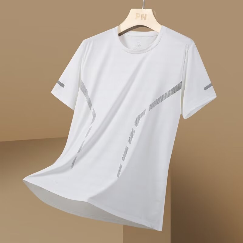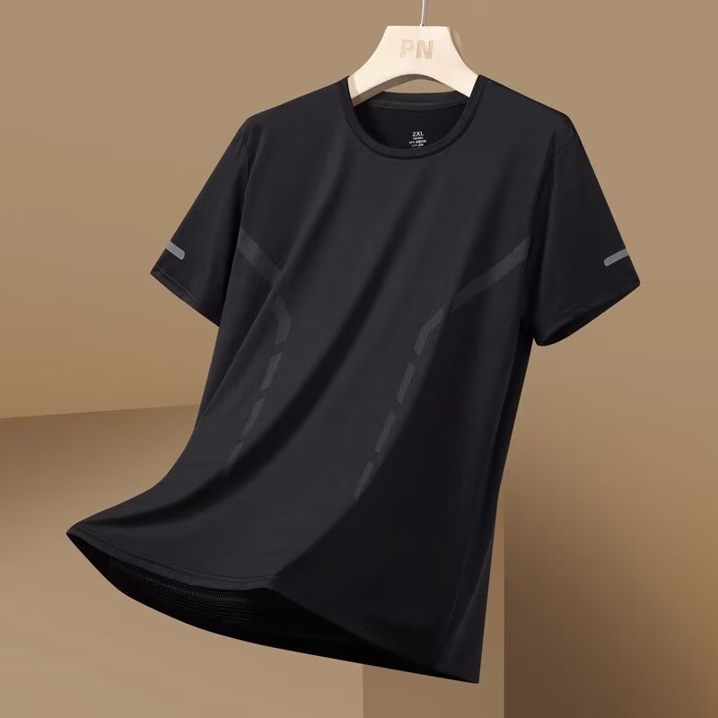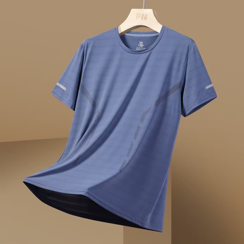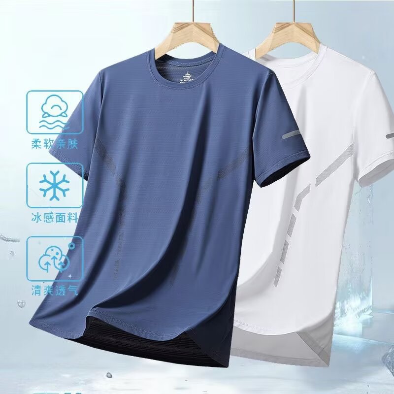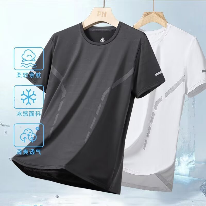 여름 아이스 실크 반팔 티셔츠 남자 라운드 넥 통기성 빠른 건조 옷 얇은 반소매 대형 최고 남성 스포츠 루즈 트렌디스토어 가기