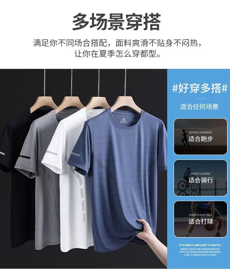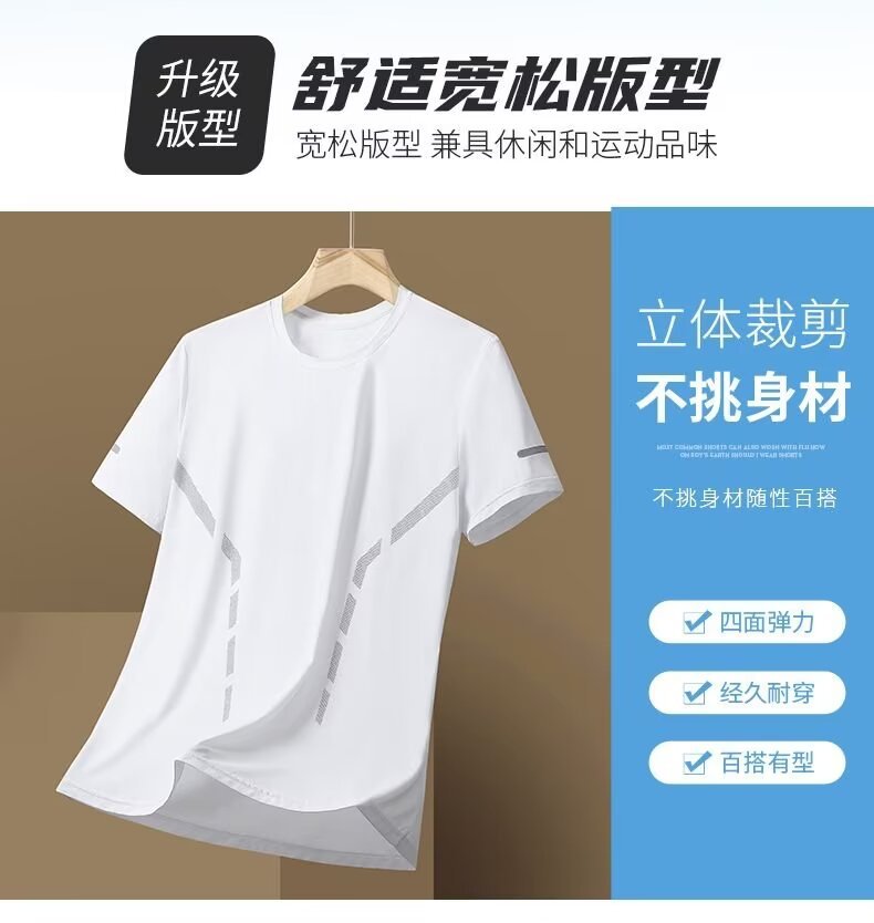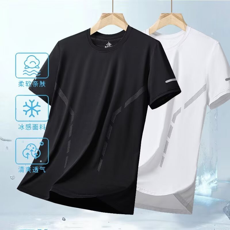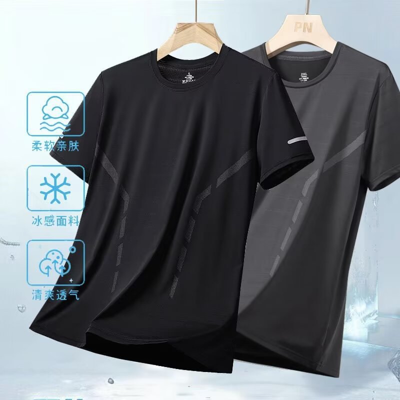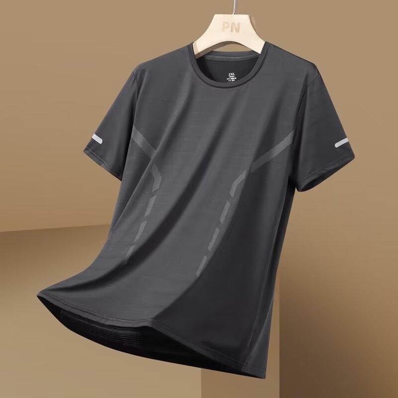 여름 아이스 실크 반팔 티셔츠 남자 라운드 넥 통기성 빠른 건조 옷 얇은 반소매 대형 최고 남성 스포츠 루즈 트렌디스토어 가기