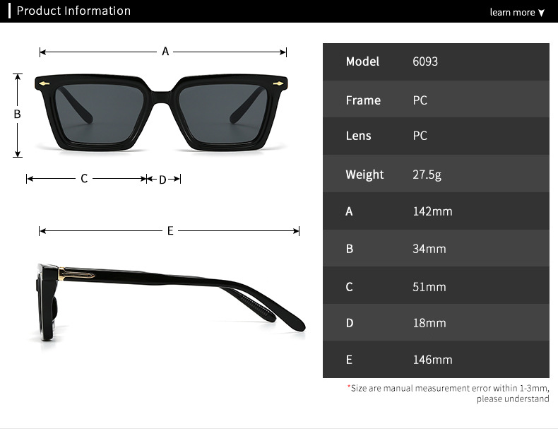 유럽과 미국의 국경 간 트렌드 스트리트 촬영 레트로 스퀘어 라이스 스타 링 아트 선글라스 현대 매력 INS 선글라스 6093