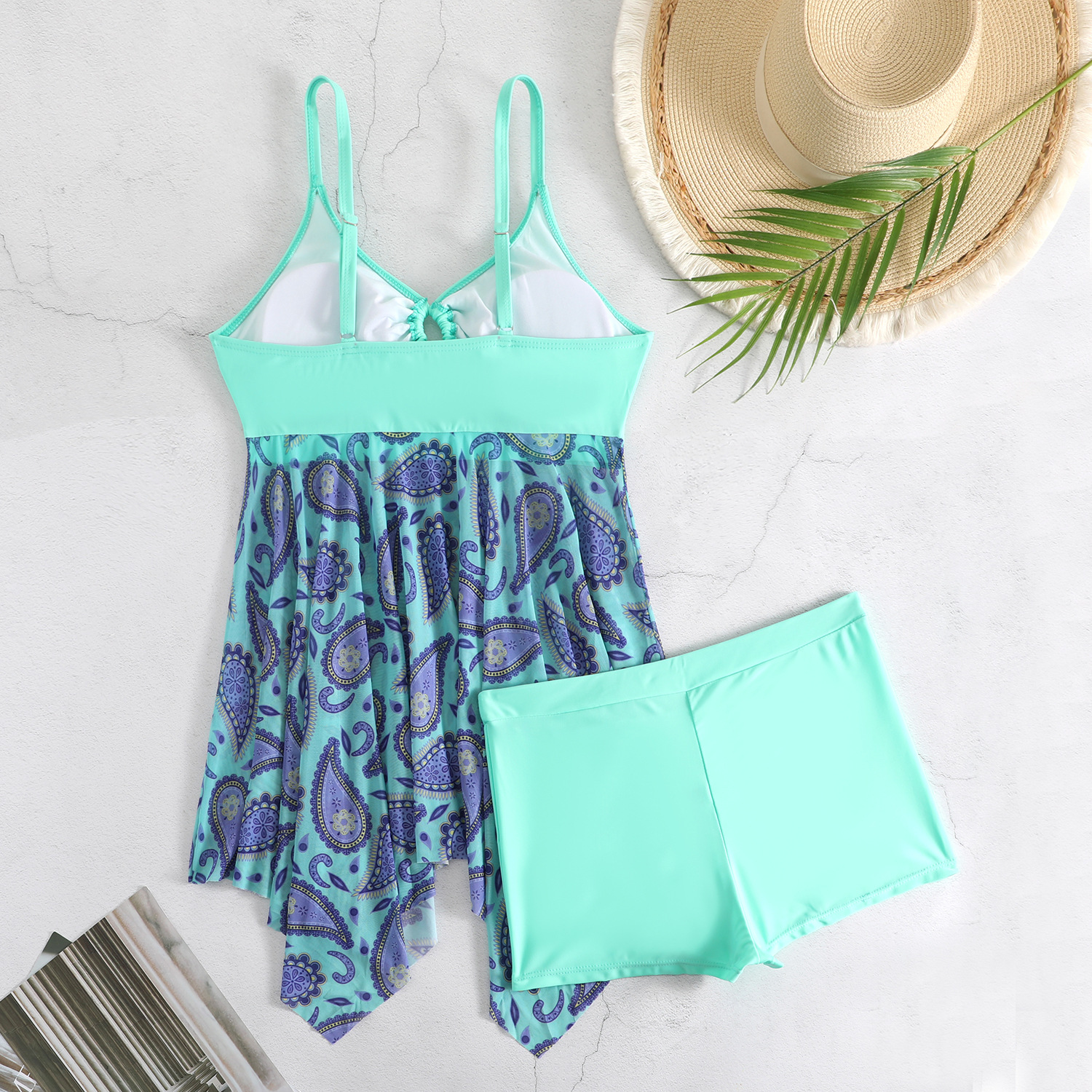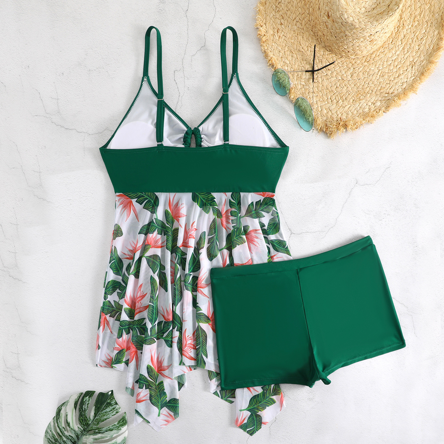 2024 유럽과 미국의 새로운 대형 tankini 분할 수영복 아마존 보수적 인 메쉬 스티칭 플랫 앵글 수영복 도매