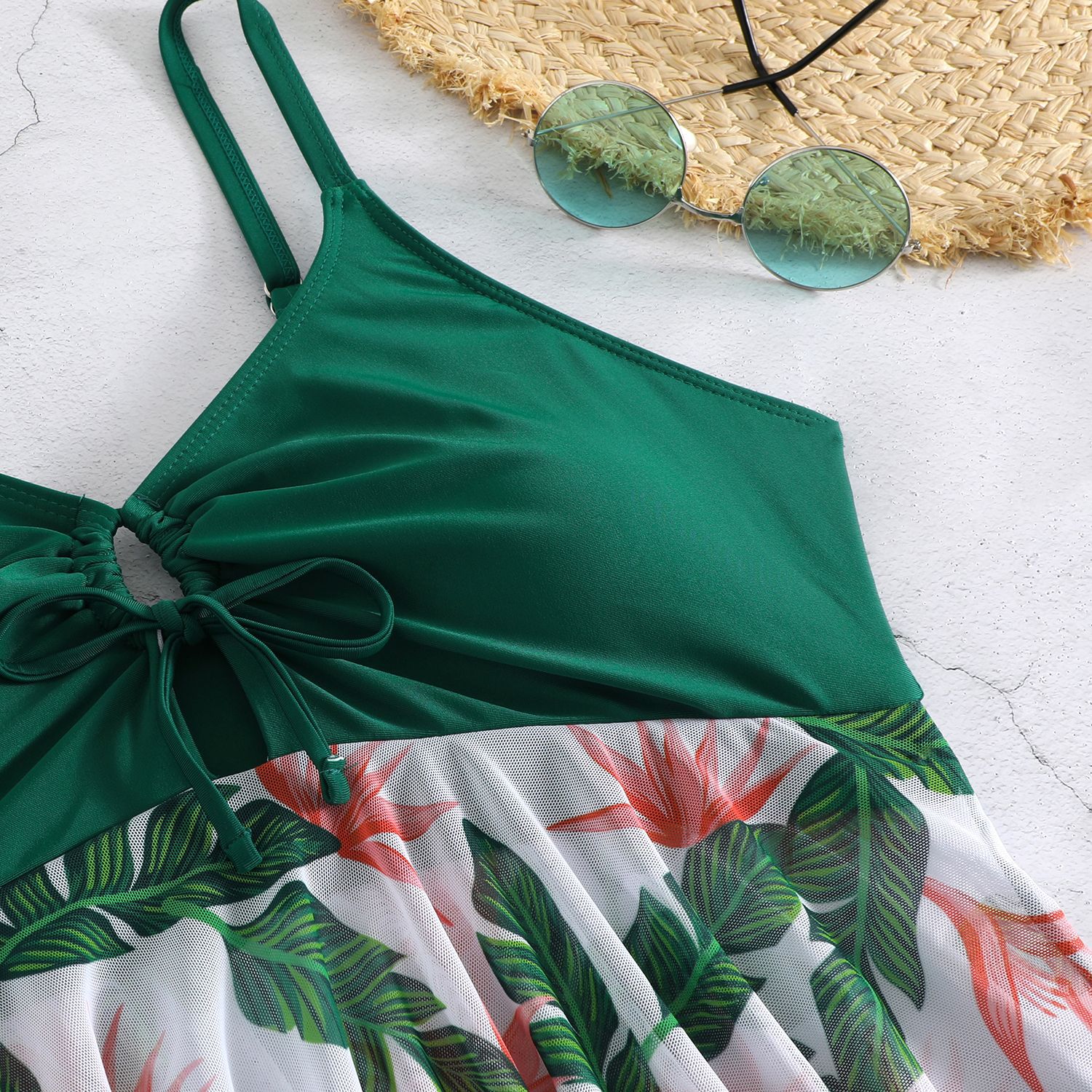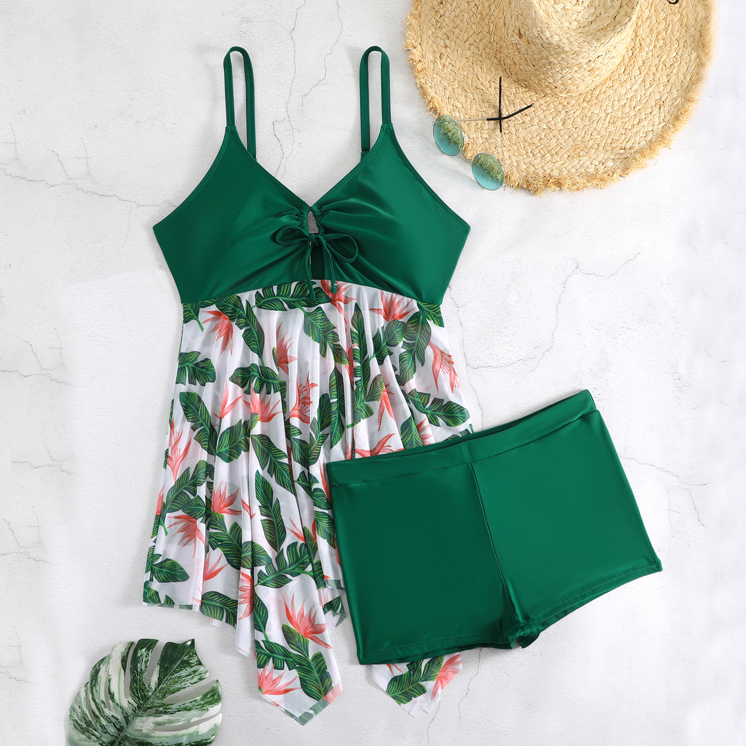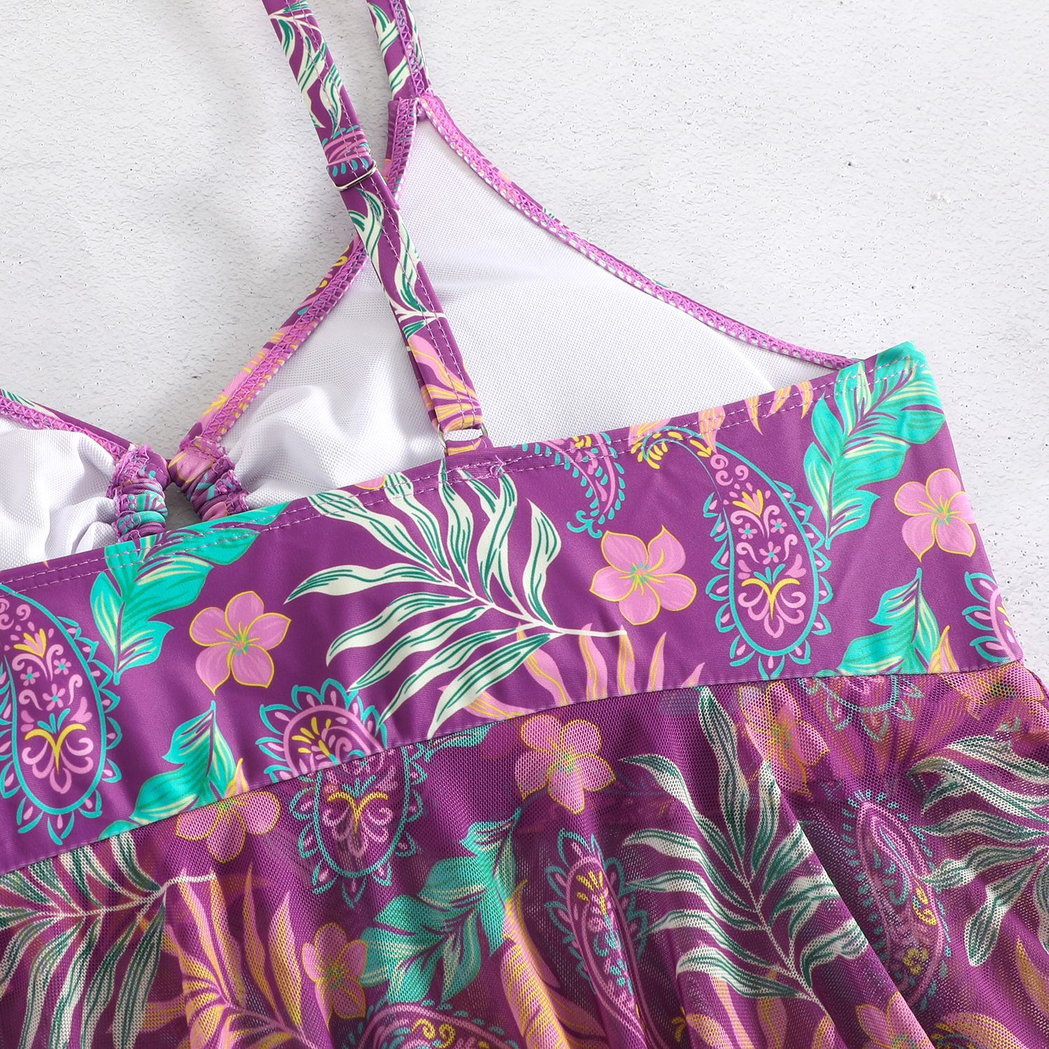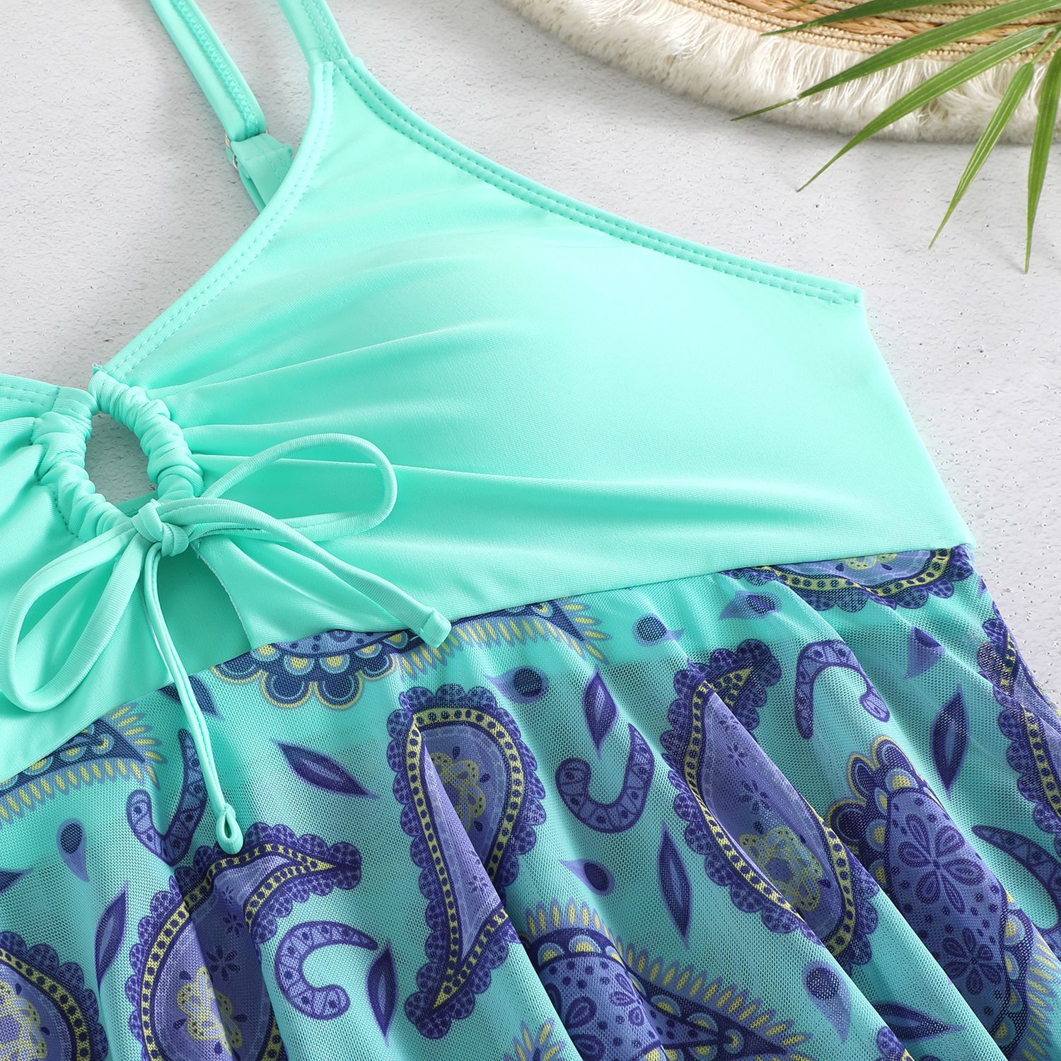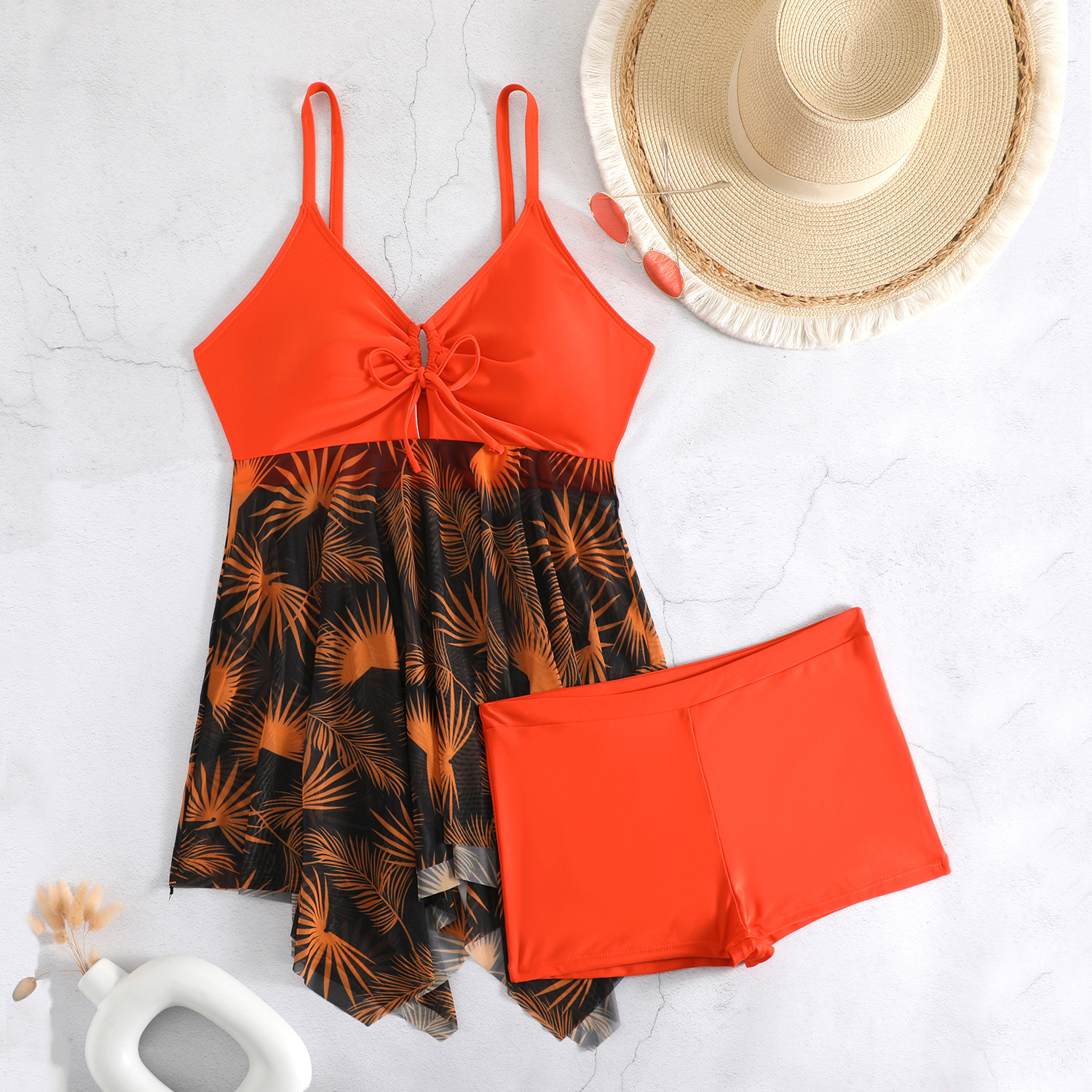 2024 유럽과 미국의 새로운 대형 tankini 분할 수영복 아마존 보수적 인 메쉬 스티칭 플랫 앵글 수영복 도매스토어 가기