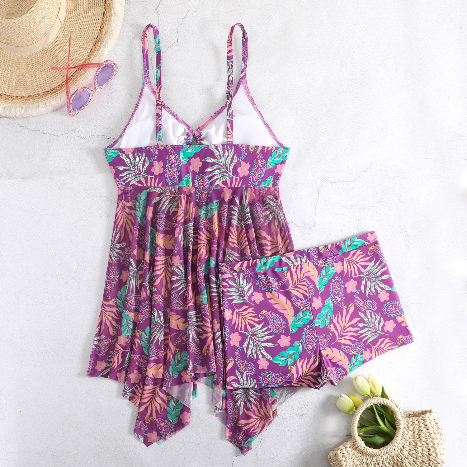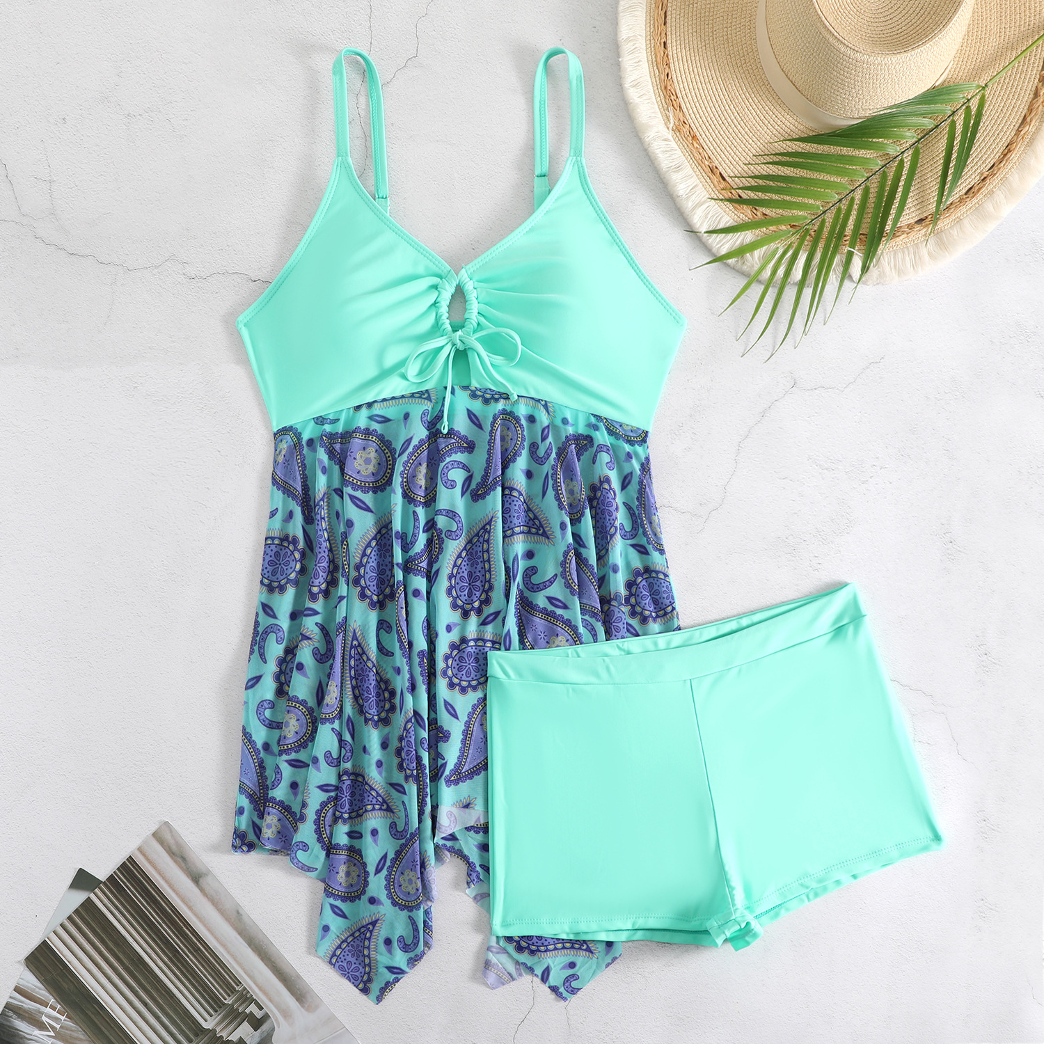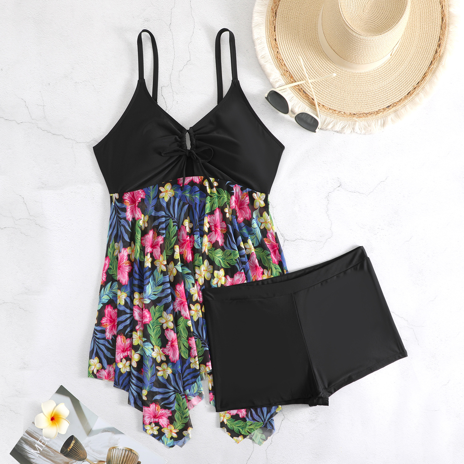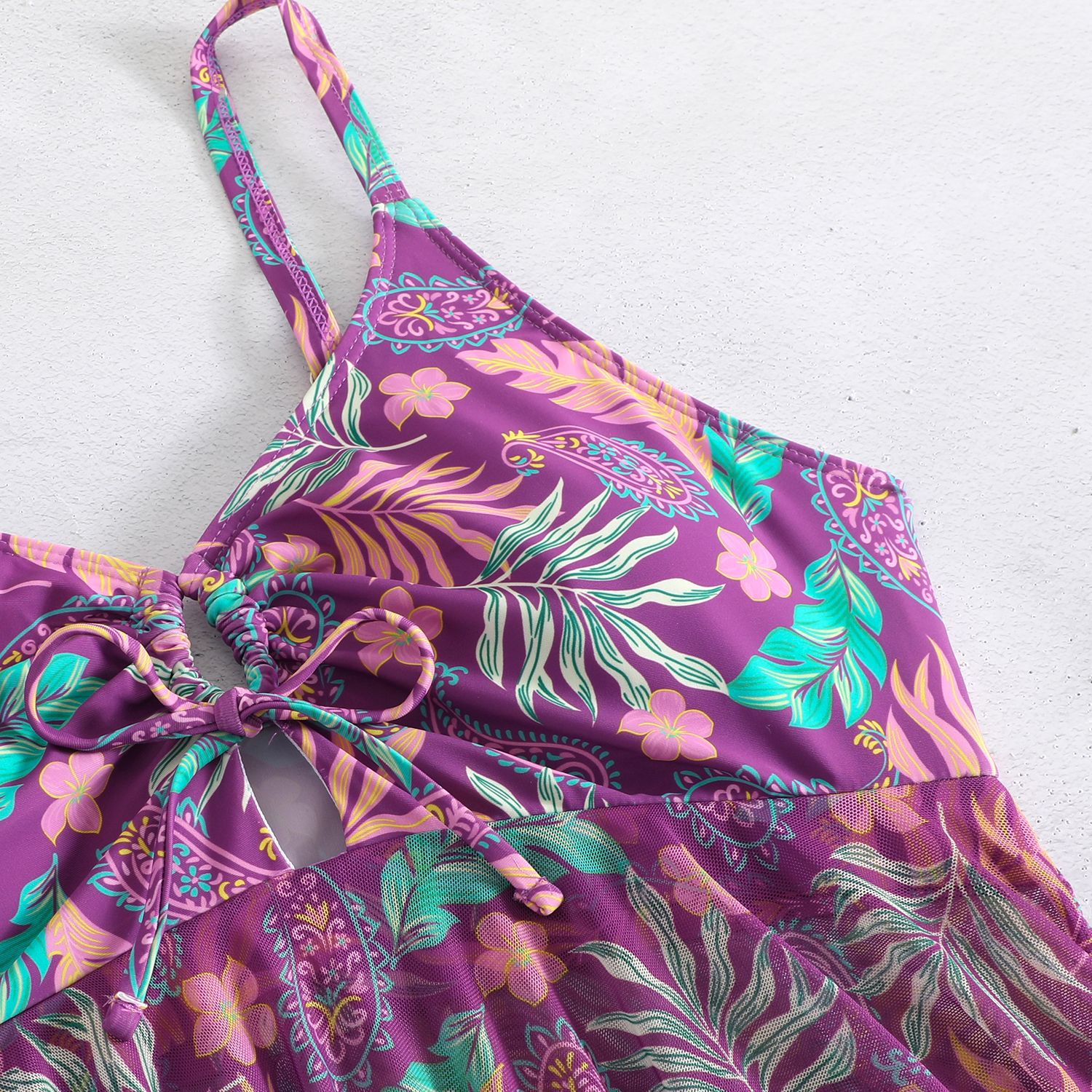 2024 유럽과 미국의 새로운 대형 tankini 분할 수영복 아마존 보수적 인 메쉬 스티칭 플랫 앵글 수영복 도매스토어 가기