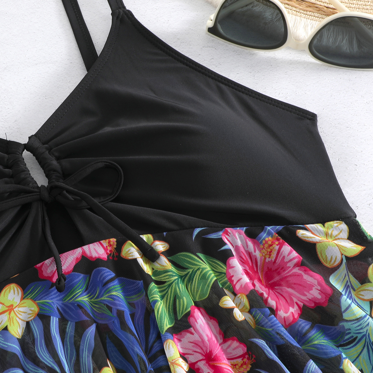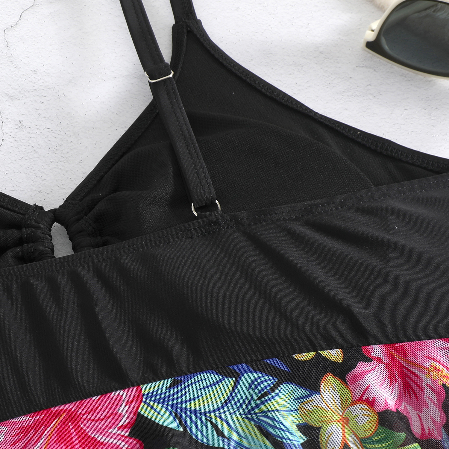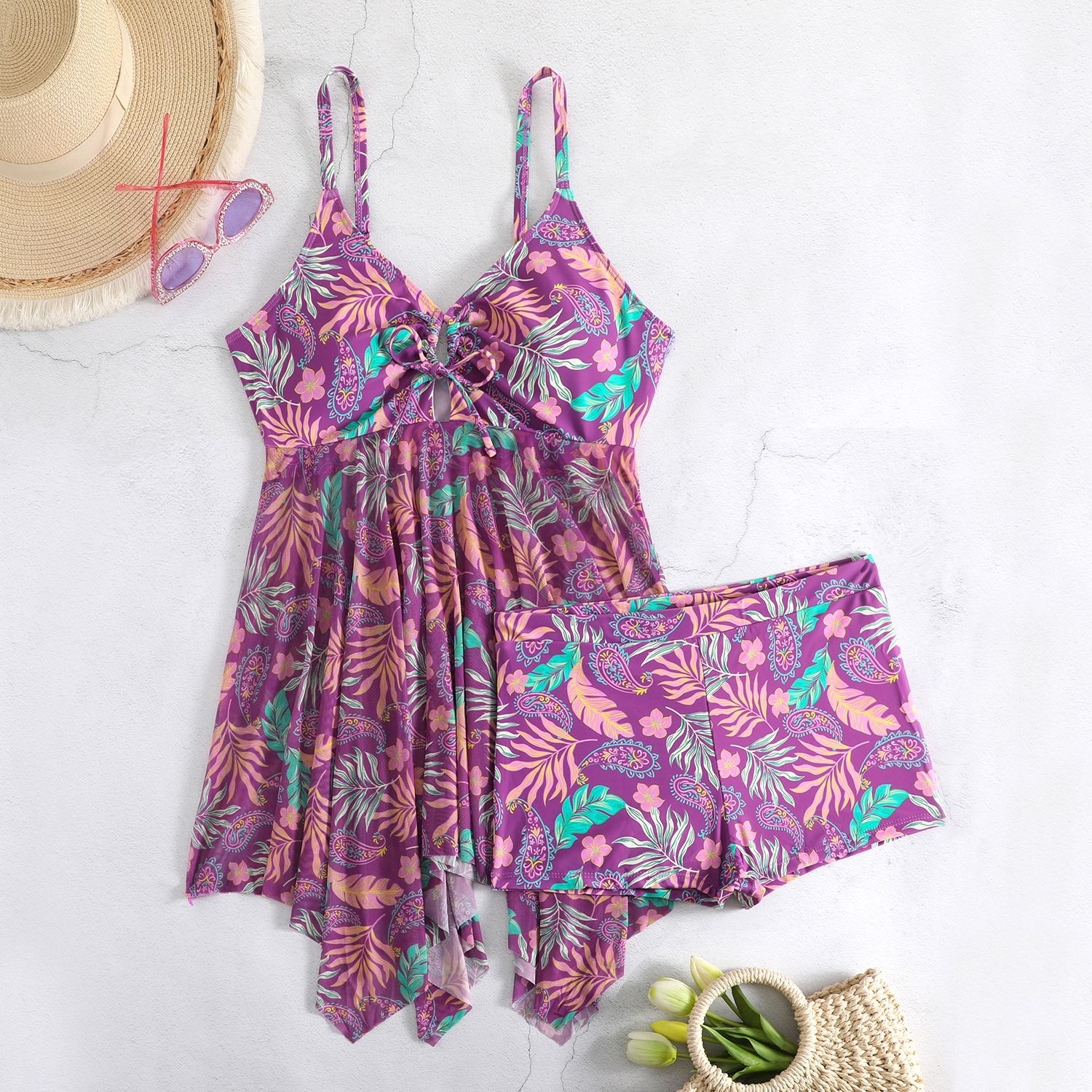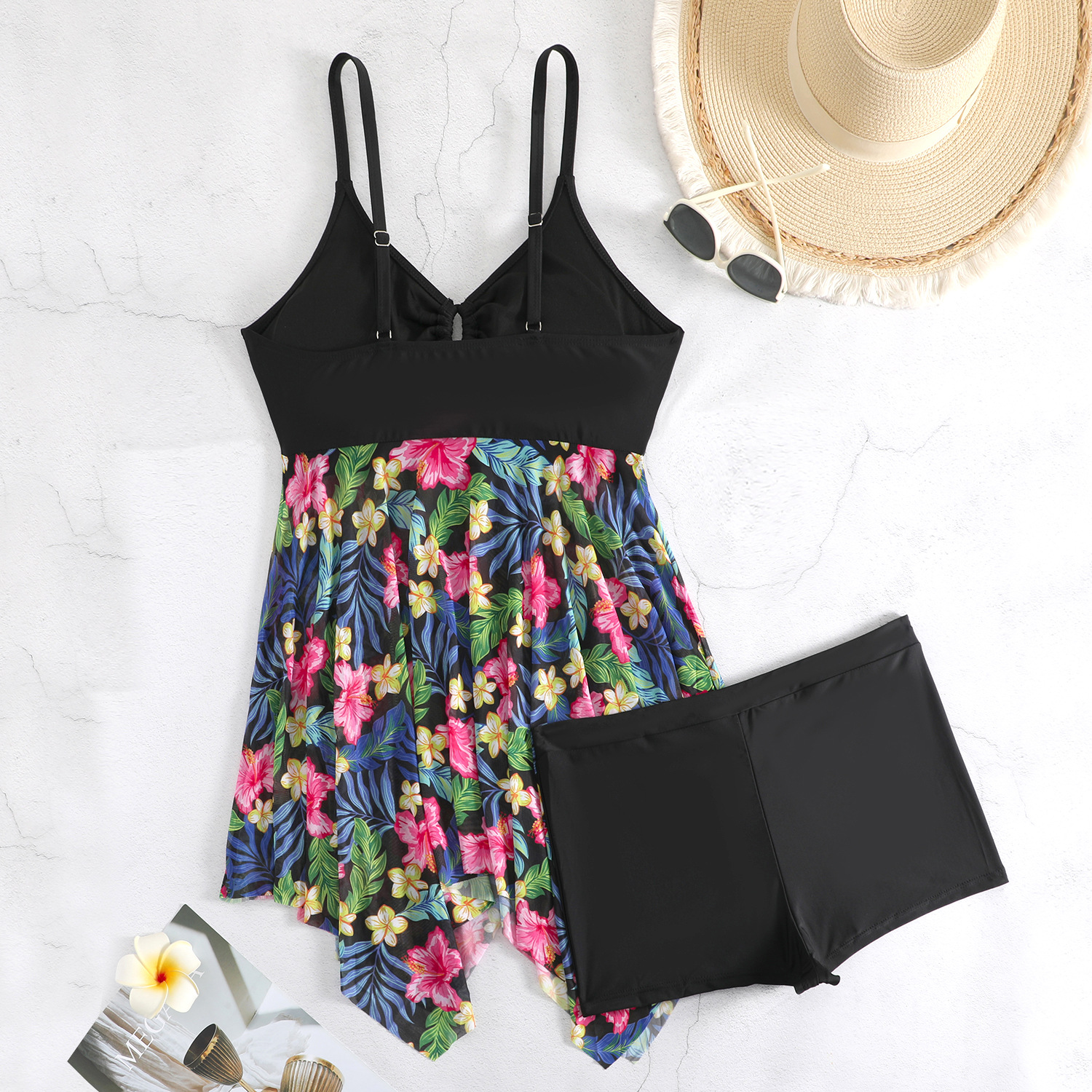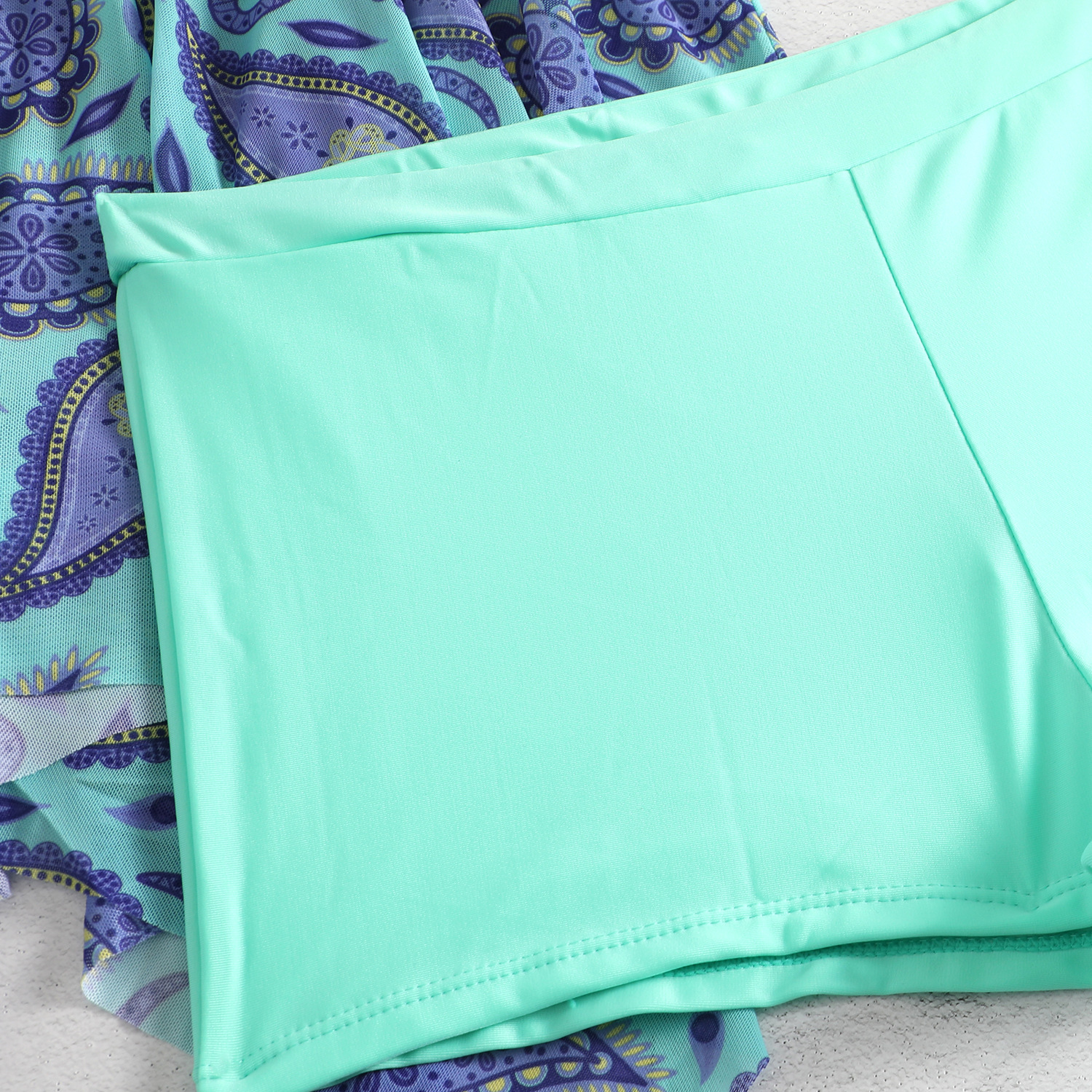 2024 유럽과 미국의 새로운 대형 tankini 분할 수영복 아마존 보수적 인 메쉬 스티칭 플랫 앵글 수영복 도매스토어 가기
