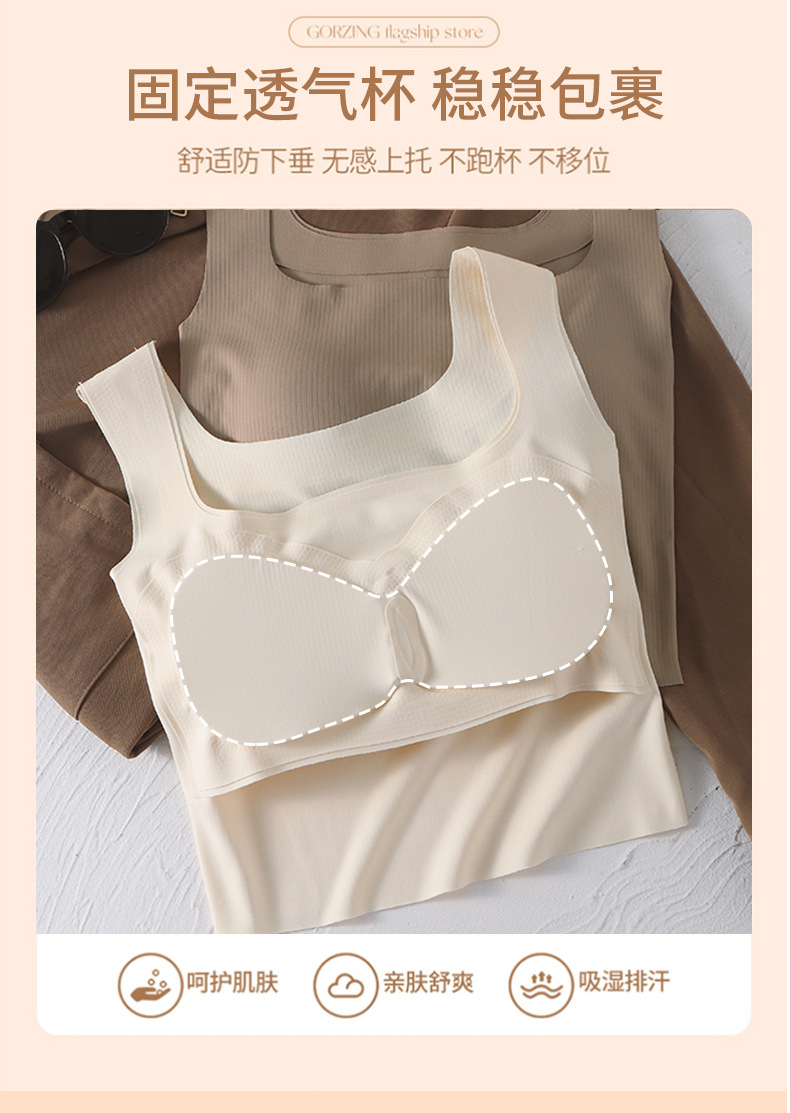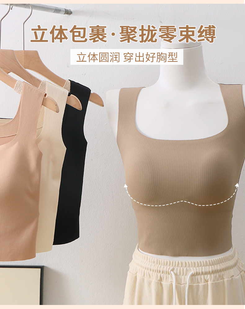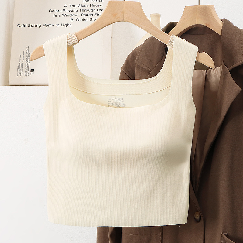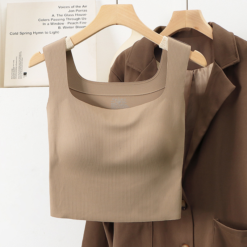 넓은 어깨 끈 비 마킹 조끼 여자 올매치 통합 슬링 가슴 패드 여름 내부 탑베이스 화이트 아우터웨어 여성스토어 가기