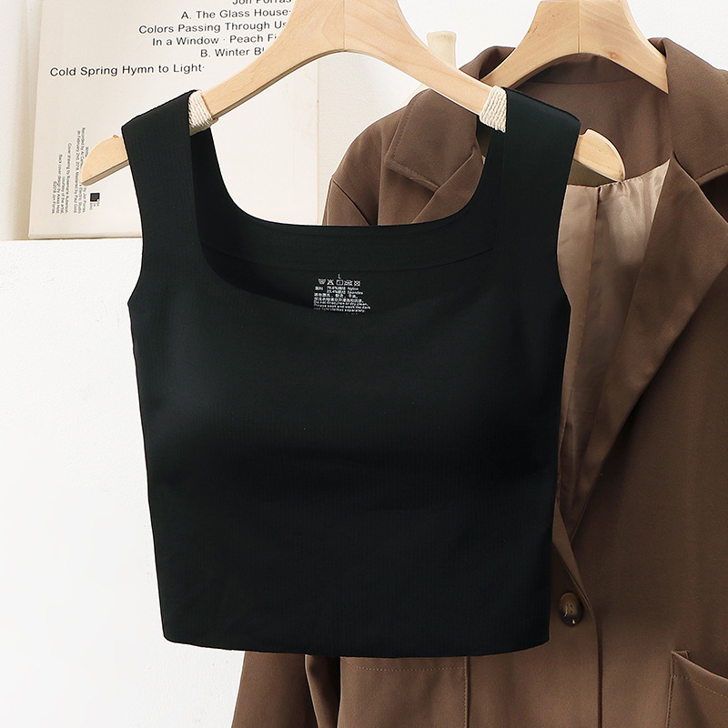 넓은 어깨 끈 비 마킹 조끼 여자 올매치 통합 슬링 가슴 패드 여름 내부 탑베이스 화이트 아우터웨어 여성