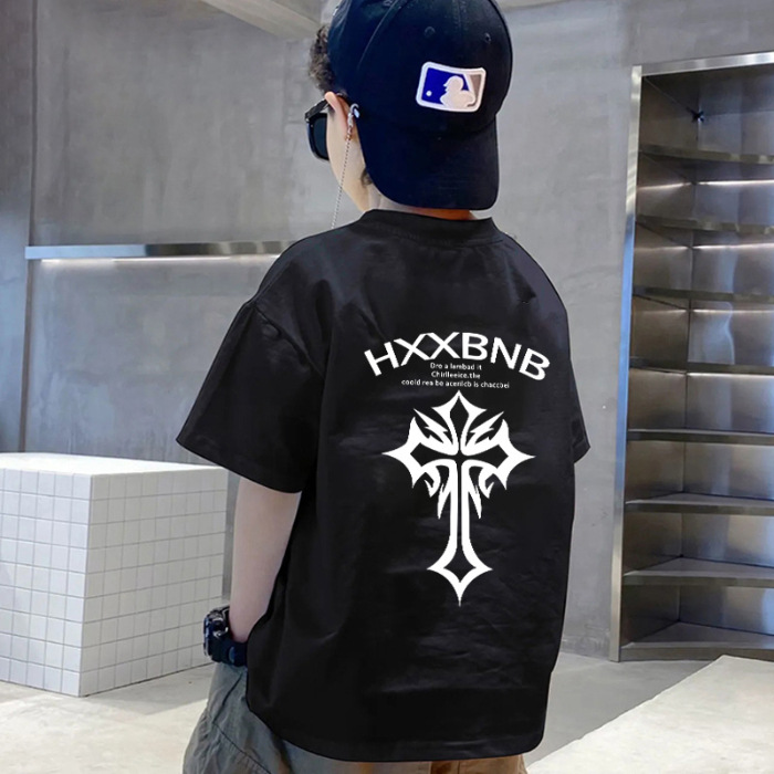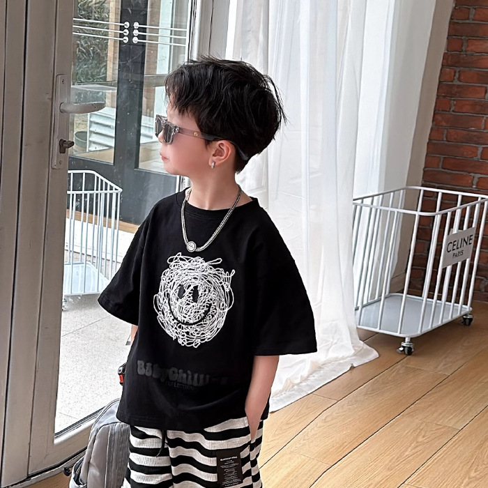아동복 남아 여름옷 2026 신상 트렌디 캐주얼 아동 반팔 티셔츠 순면 상의 여름 큰 남자아이용