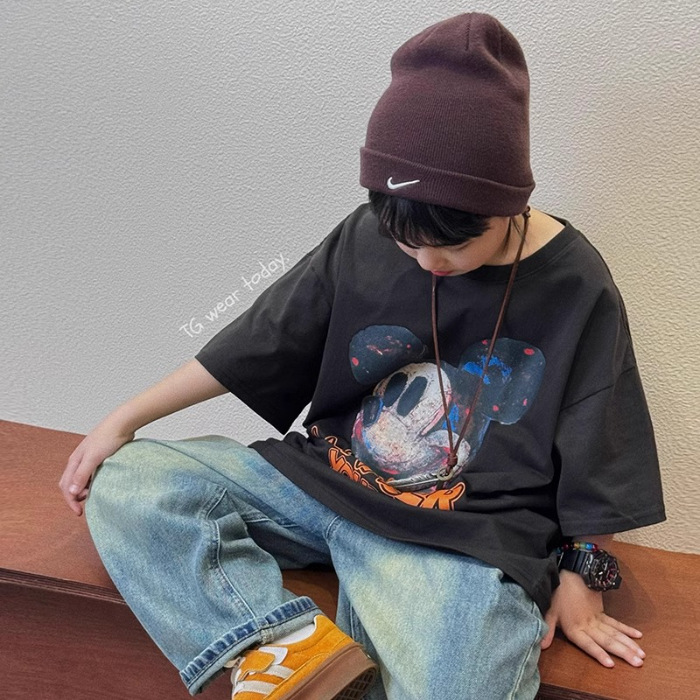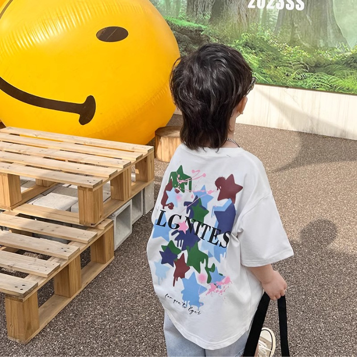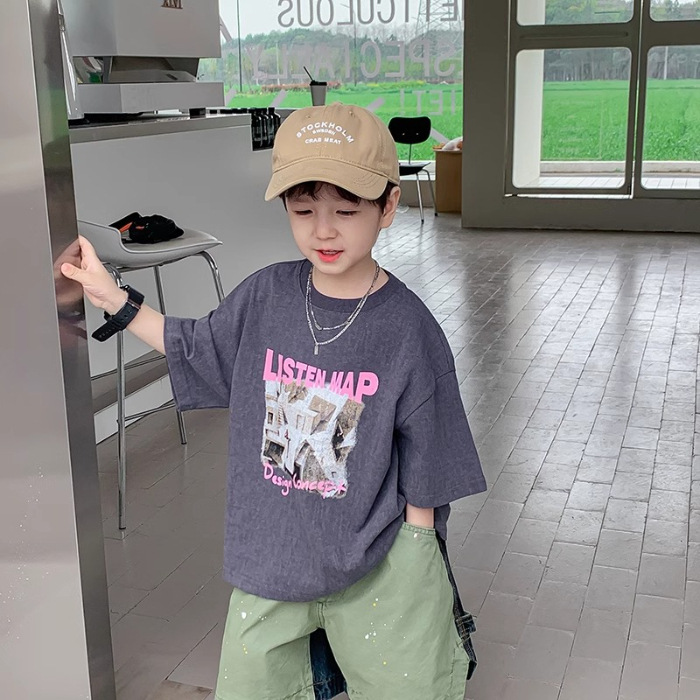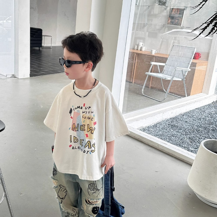 아동복 남아 여름옷 2026 신상 트렌디 캐주얼 아동 반팔 티셔츠 순면 상의 여름 큰 남자아이용스토어 가기