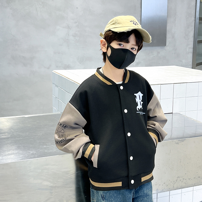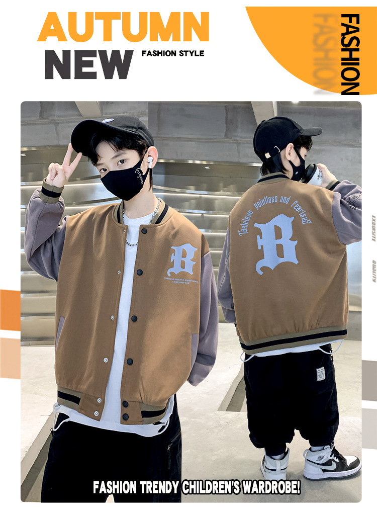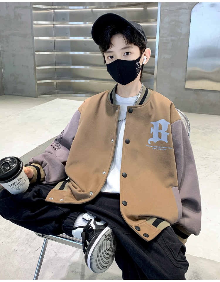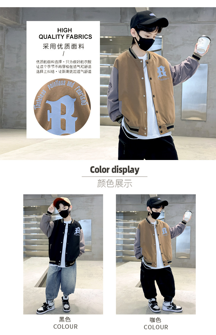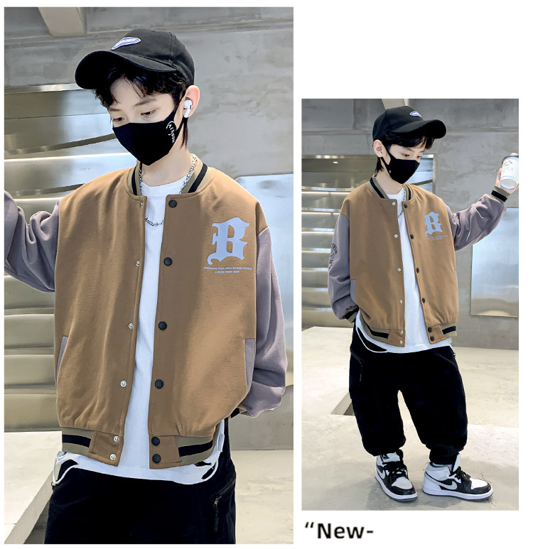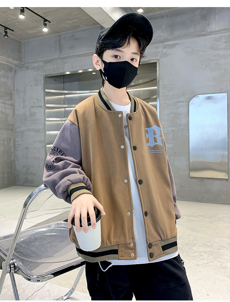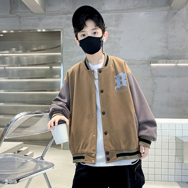 소년의 봄 컬러 블록 야구 세트 코트 2024 새로운 어린이 서양 스타일 핸섬 캐주얼 코트 대형 어린이 재킷