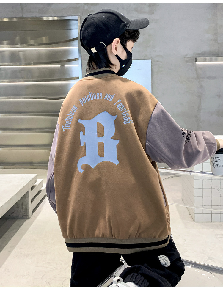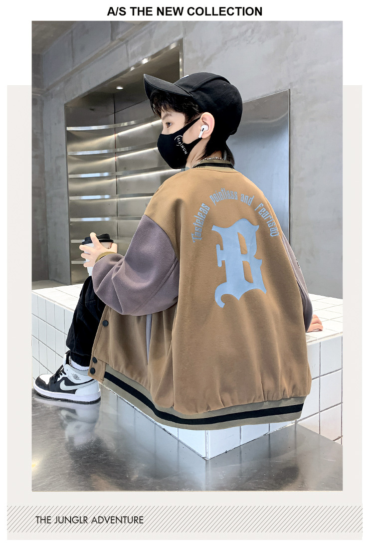 소년의 봄 컬러 블록 야구 세트 코트 2024 새로운 어린이 서양 스타일 핸섬 캐주얼 코트 대형 어린이 재킷스토어 가기