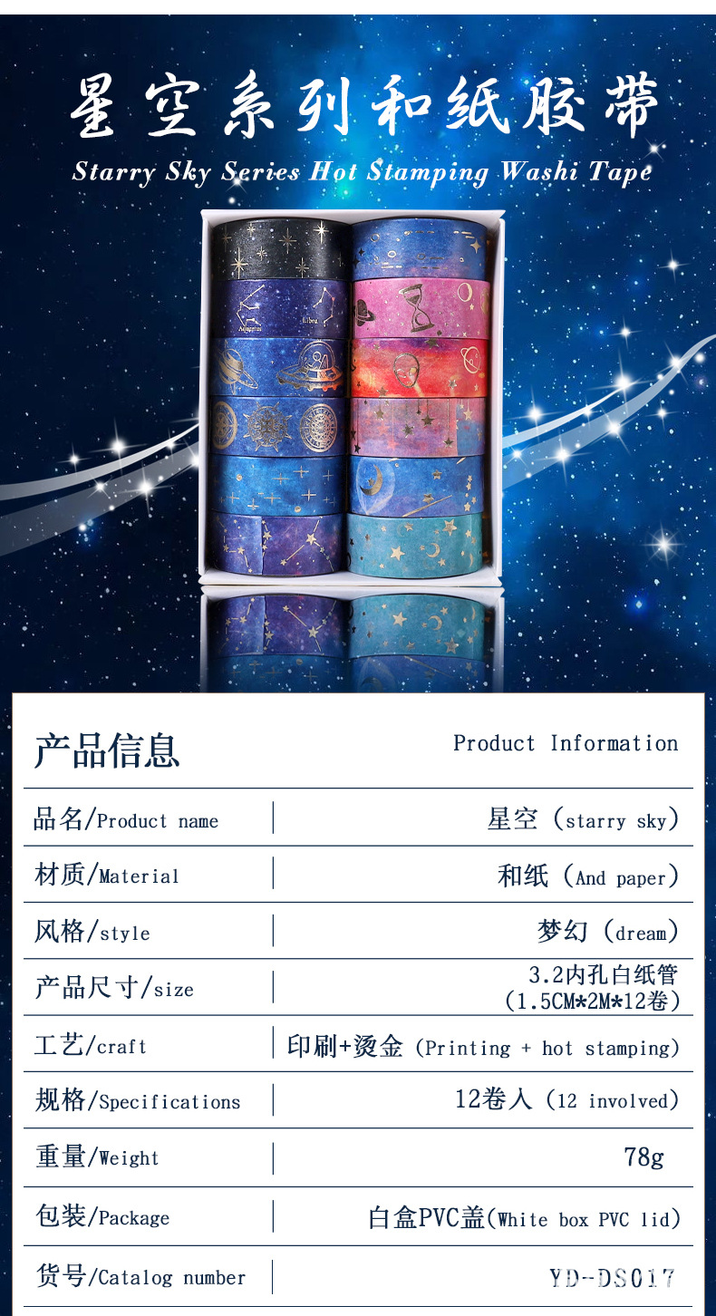 크로스보더 별빛 시리즈 금박 와시 테이프 DIY 장식 어린이 창의생활 다이어리 재료 스티커스토어 가기